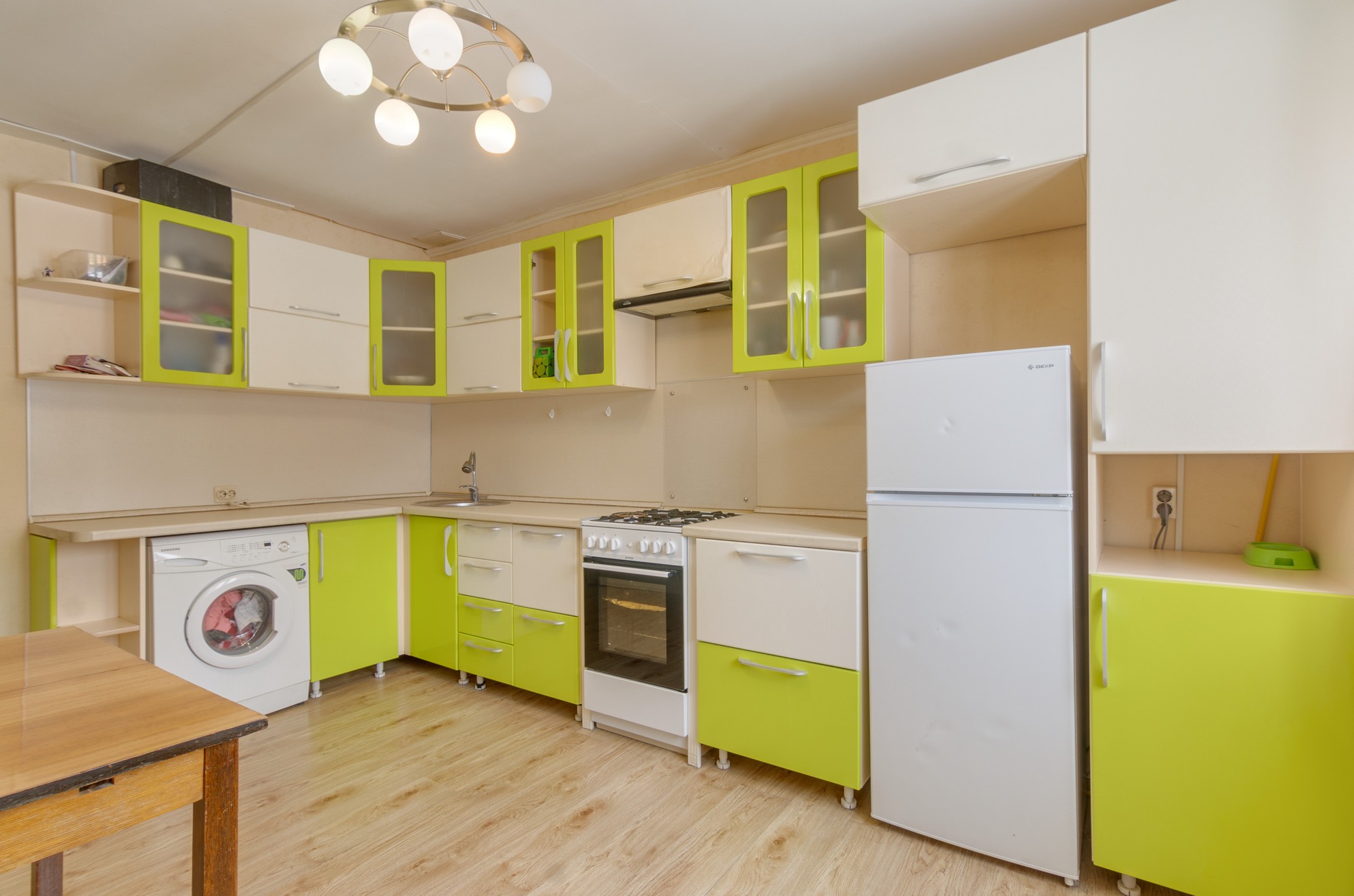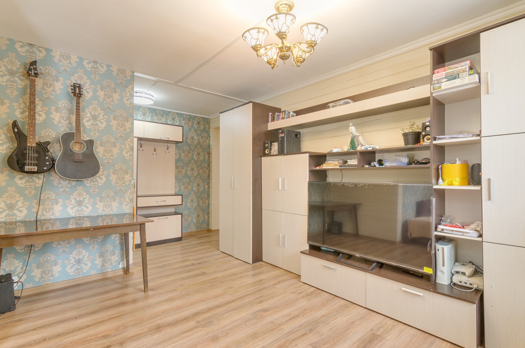 В квартире есть просторная гостиная, вместительная кухня.