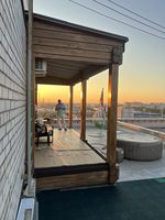 Продаю двухкомнатную квартиру в доме с индивидуальной котельной. 12-й этаж, панорамные окна, высокий потолок и прямой выход из квартиры на открытую террасу площадью 37 м². Это не общий балкон, а личное пространство на крыше города — с возможностью обустроить там зону отдыха, поставить кресла, цветы, уличное освещение. Красивый вид и тишина, особенно по вечерам — сторона западная, закаты видно отлично.