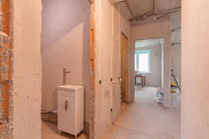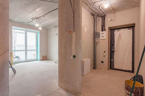 В квартире горизонтальная разводка труб отопления, горячего и холодного водоснабжения (в полу).