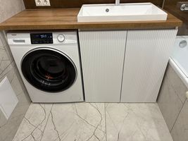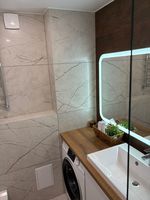 Оснащение премиум-класса: кухня укомплектована всей необходимой встроенной техникой (холодильник, посудомоечная машина, варочная панель, духовой шкаф, СВЧ). Установлена эксклюзивная импортная сантехника и техника, включая дорогую стиральную машину.