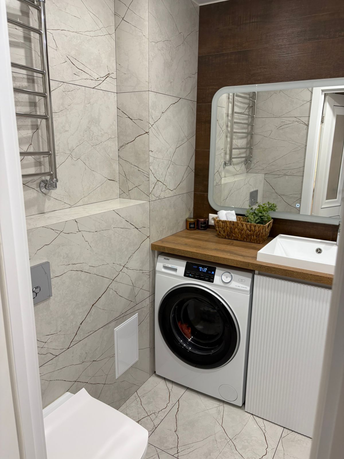 Выполнен качественный ремонт по дизайн-проекту с использованием премиальных материалов. Вся мебель изготовлена на заказ и идеально вписывается в пространство.