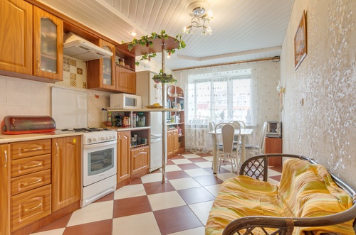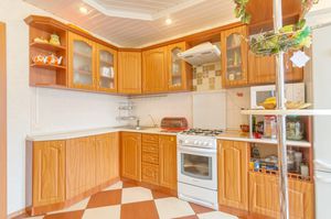 В комнатах на полу ламинат, на кухне керамическая плитка.