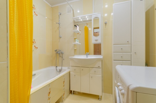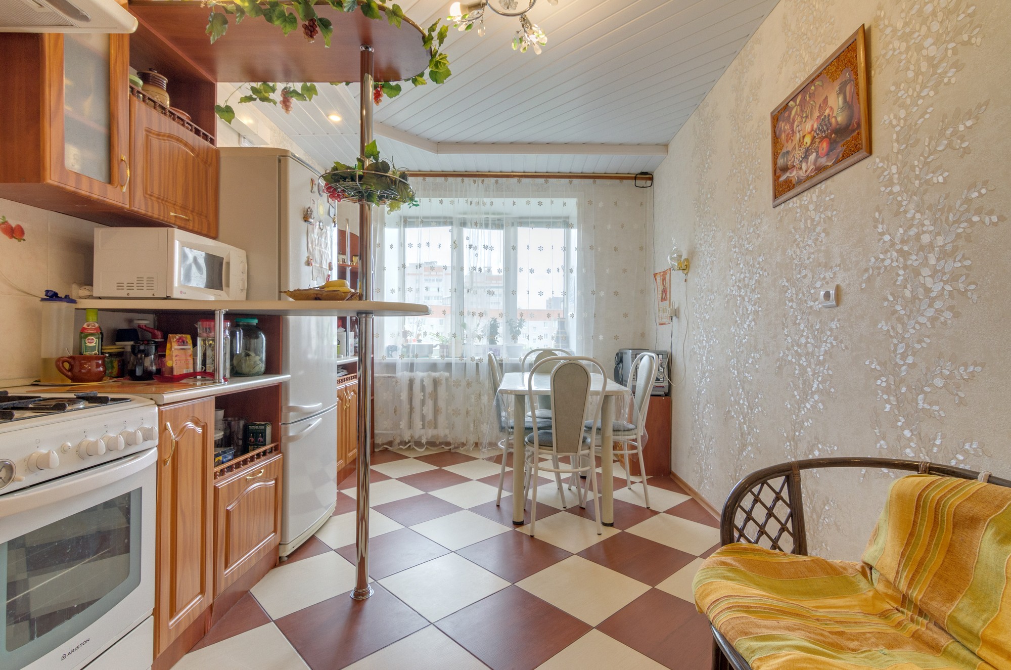 В ванной и кухне кафель.