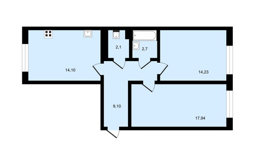 Общая площадь квартиры составляет 60,5 кв. м, Удобная планировка включает две просторные комнаты площадью 14 кв.м и 18 кв. м. Функциональная кухня - 14 кв. м. станет отличным местом для семейных ужинов и встреч с друзьями. Высота потолков в 2,6 м добавляет ощущения лёгкости и простора.