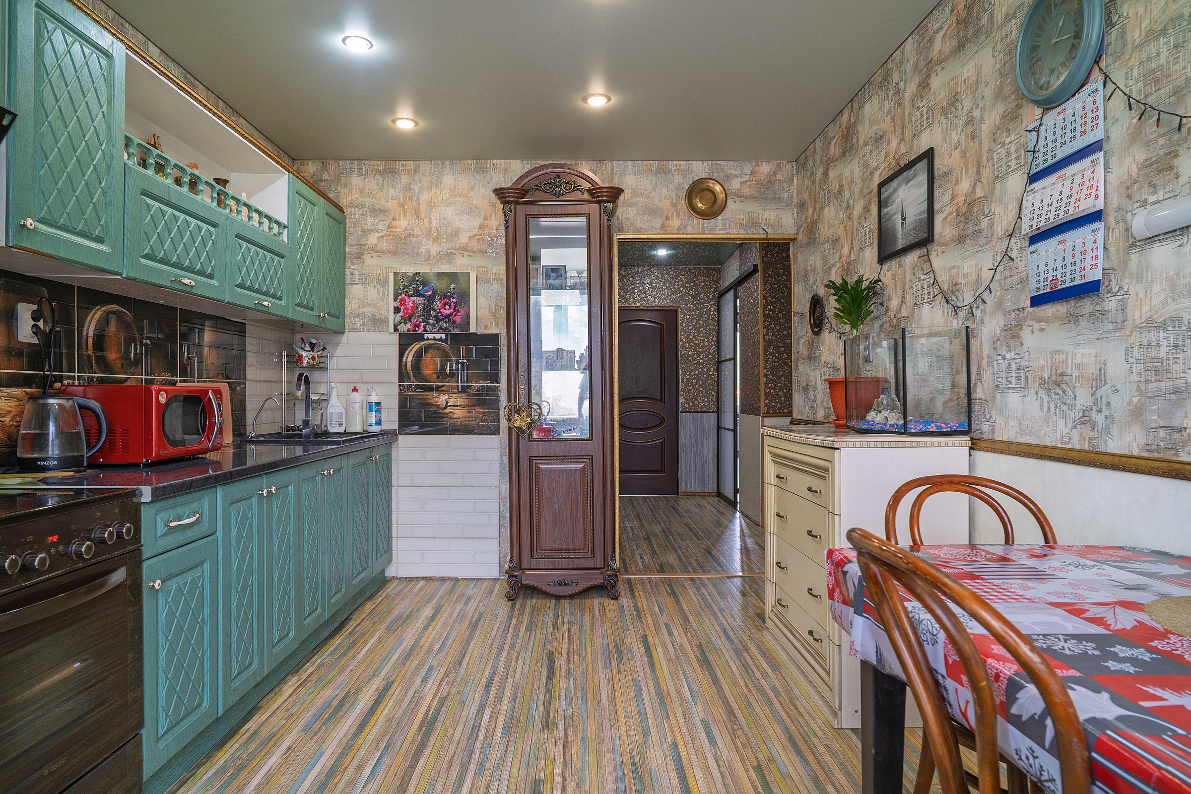 В подарок новым собственникам остается отличный кухонный гарнитур, вытяжка, детский спортивный комплекс, гардеробный шкаф в спальне и стеллаж. Остальная мебель и техника по договоренности.