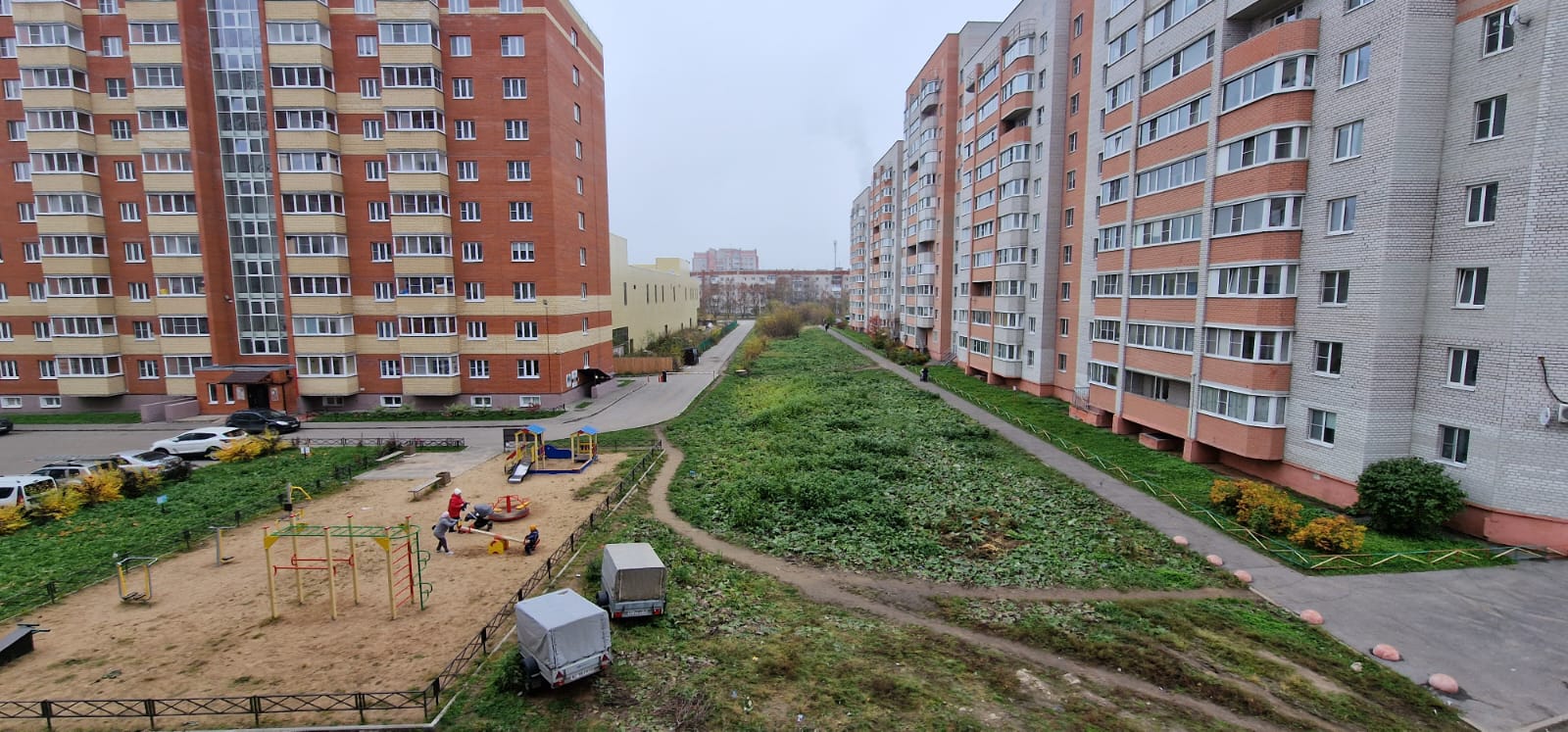 Дом расположен внутри квартала - двор тихий, с большой парковкой для авто.