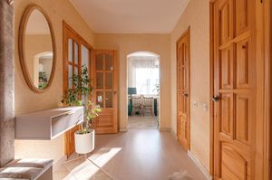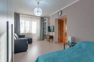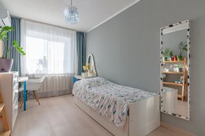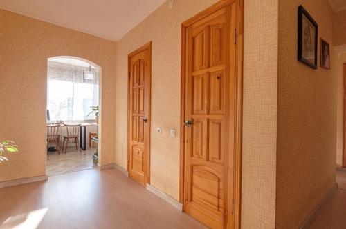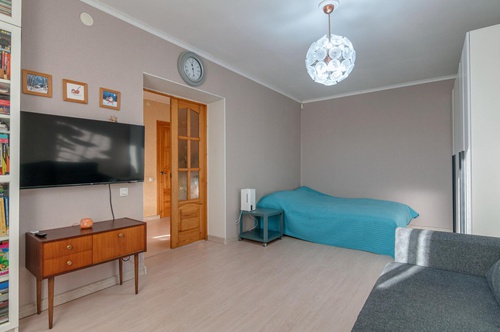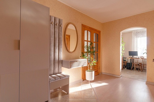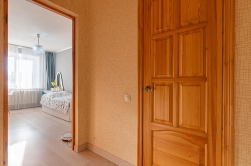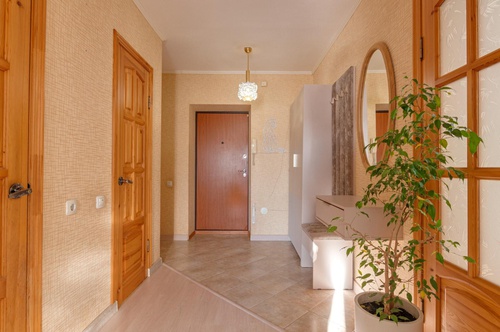- удачная планировка: комнаты изолированы и разнесены по разные стороны от прихожей и санузла, что обеспечивает звукоизоляцию и комфорт для всех членов семьи. Есть просторная гардеробная для хранения сезонных вещей. Лоджия застеклена, проведено электричество.