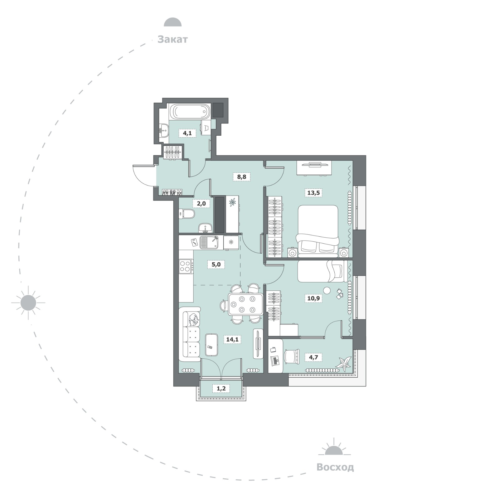 Уникальное предложение в Вологде: двухкомнатная квартира в кирпичном доме бизнес-класса с современной планировкой на улице Возрождения, 35. Квартира площадью 64 кв. м с жилой площадью 29,1 кв. м и кухней 14,1 кв. м расположена на 10 этаже 12-этажного дома. Одна комната может стать детской, гостевой или кабинетом, остальные помещения мы уже обставили для вас с максимальным уютом и удобством пользования.