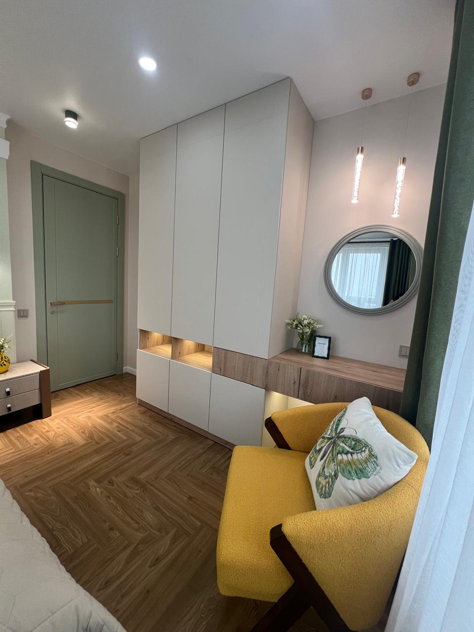 Дизайнерский ремонт позволит вам сразу заселиться и наслаждаться комфортом. Вся мебель, техника, предметы интерьера приоберены специально для этой квартиры. Высокие потолки 2,7 м создают ощущение простора.