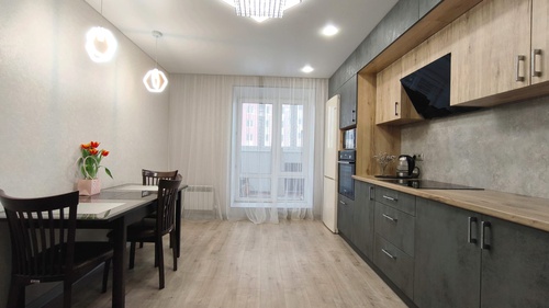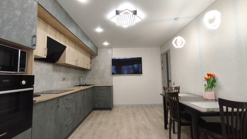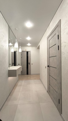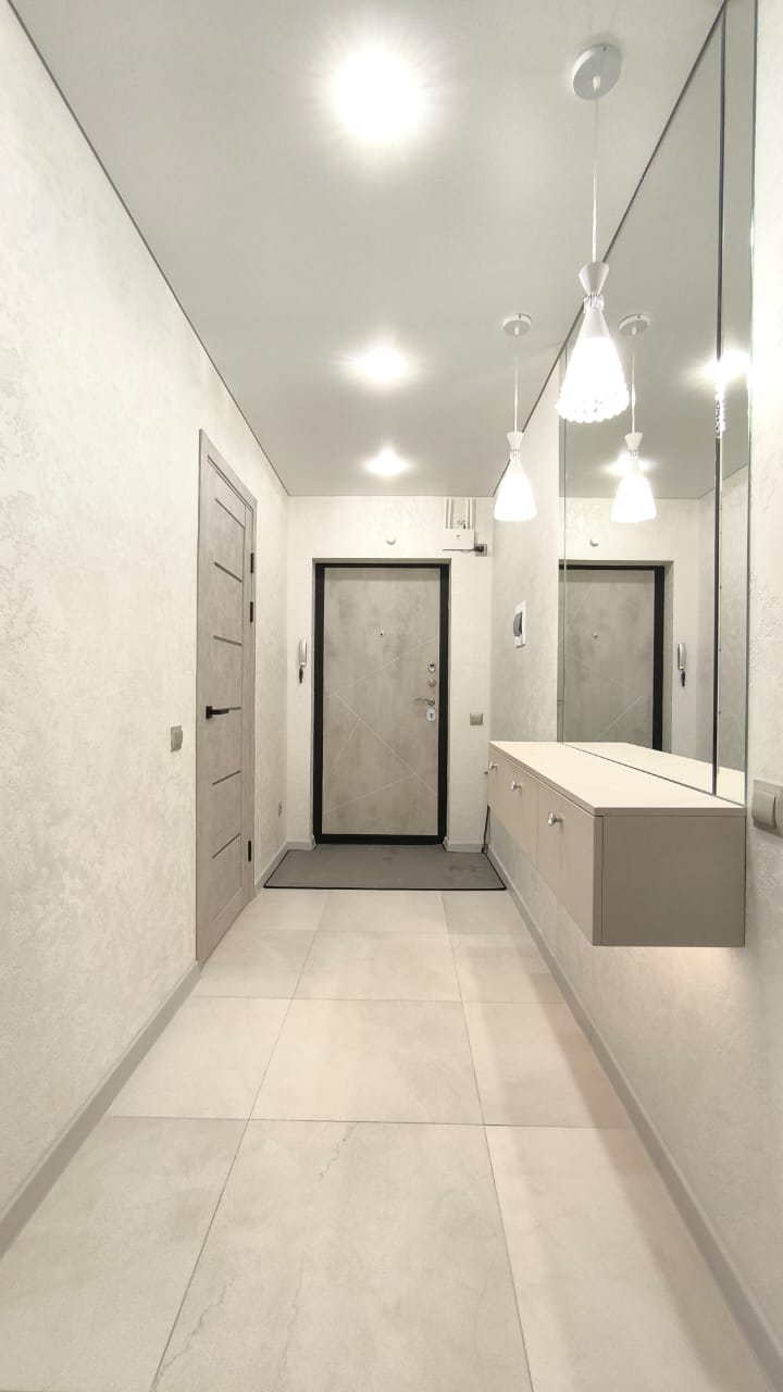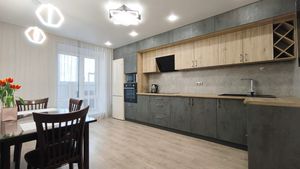 Выполнен современный евроремонт с использованием дорогостоящих и качественных материалов: напольное покрытие - ламинат с высокой степенью износостойкости и влагостойкости, керамогранит; качественные межкомнатные двери и фурнитура; в санузлах керамогранит с модной и актуальной текстурой; на стенах в прихожей - декоративная штукатурка; в жилых помещениях - обои. Во всех помещениях квартиры спроектированы разные сценарии освещения; радиаторы отопления с регулировкой температуры.