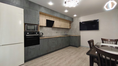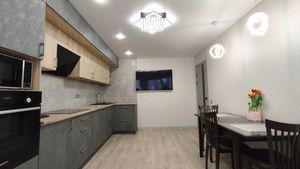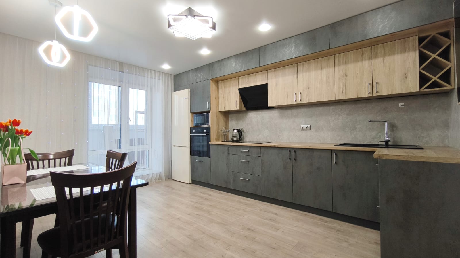 При продаже остается: кухонный гарнитур с обеденной зоной, комод, подвесные тумбы в прихожей и туалете и гардеробную систему.