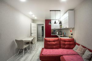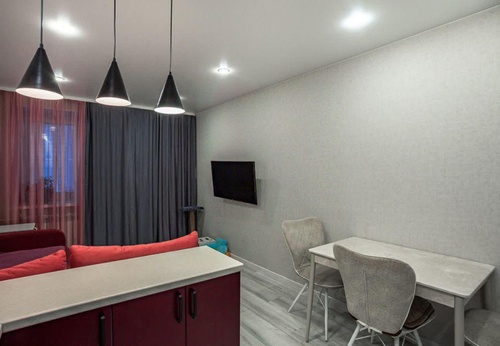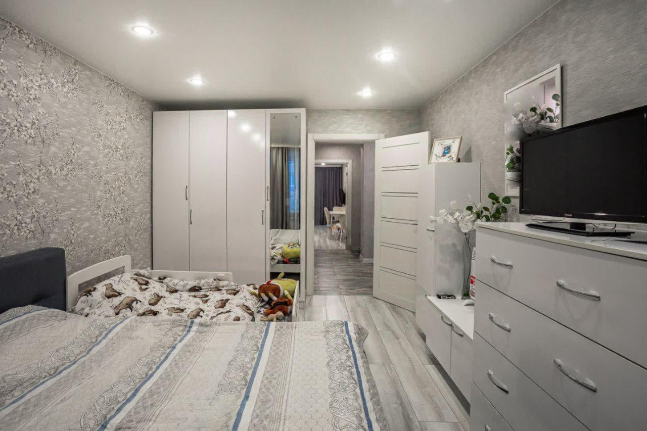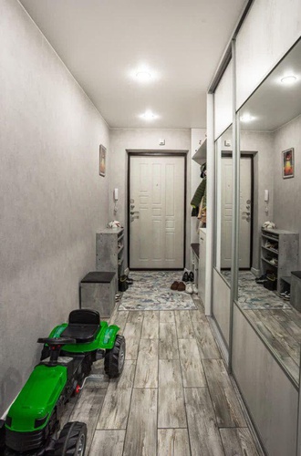 Продается квартира-евротрешка с свежим ремонтом и качественными материалами. В отделке использованы моющиеся обои, на полу — ламинат 34 класса с влагостойкой пропиткой, в коридоре — керамогранит. Потолки натяжные, в санузле — плитка.