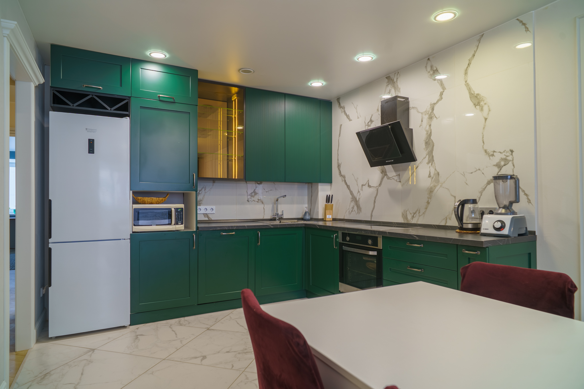 В квартире остается вся встроенная мебель, кухня и часть техники. Возможно оставить остальную мебель по договоренности.