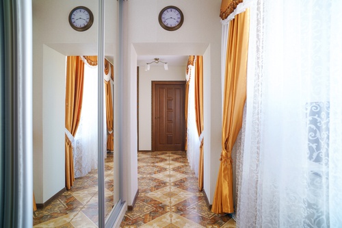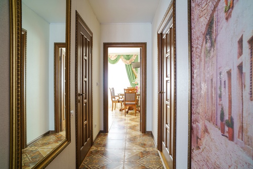 - спокойные тона стен, окна в коридоре, высокие потолки: в квартире светло и просторно;