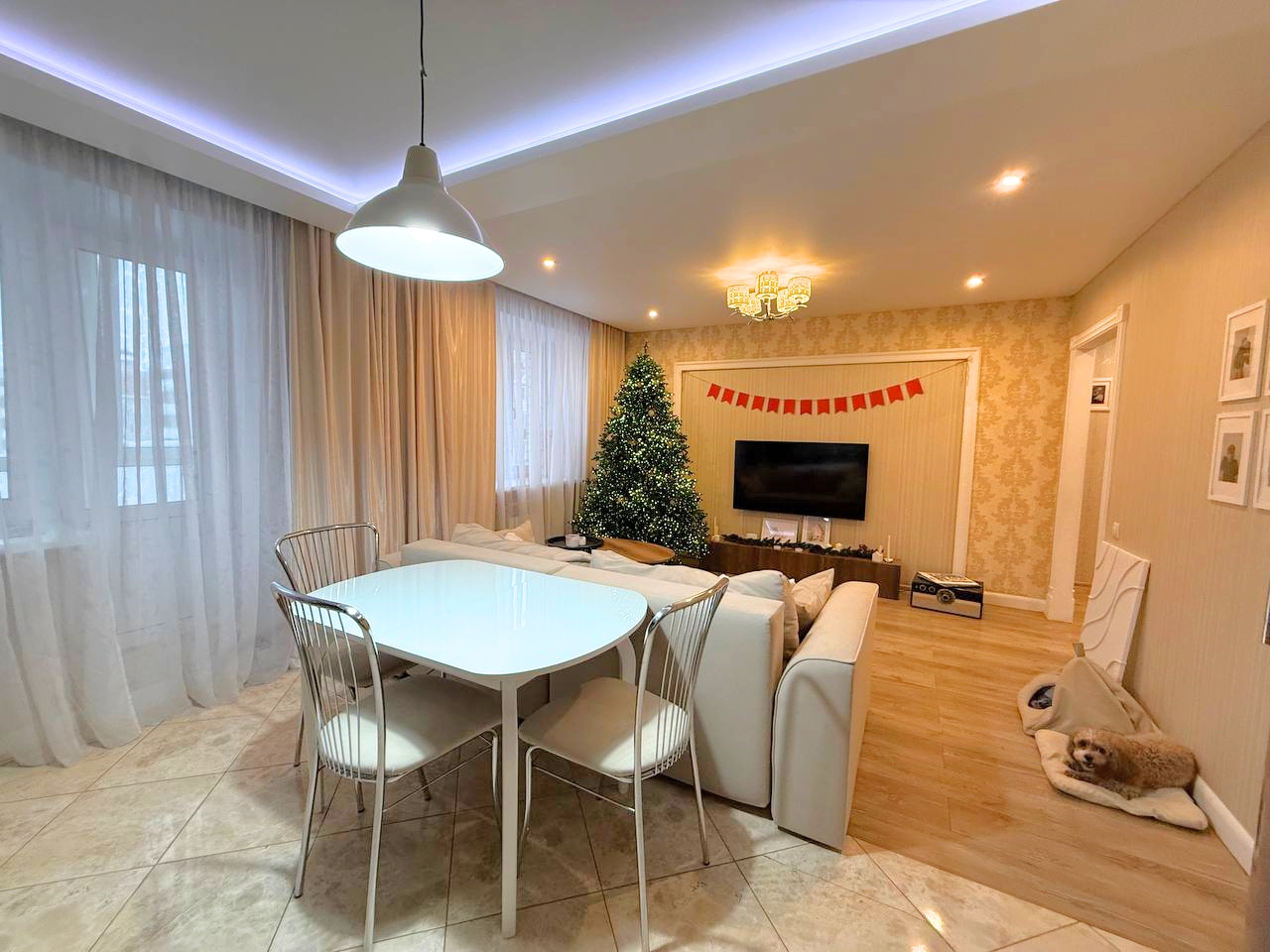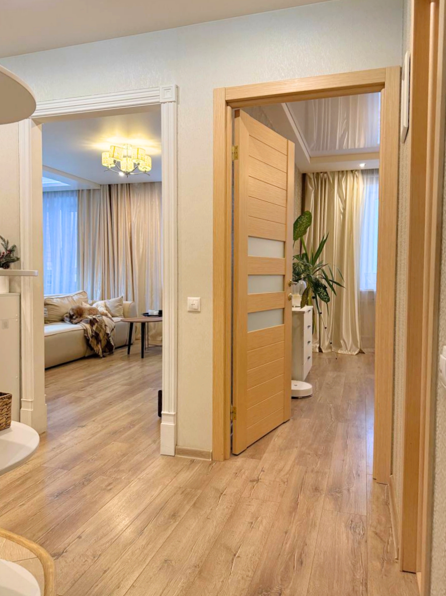 В квартире выполнен качественный ремонт в приятных пастельных тонах.