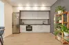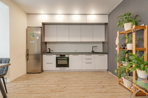с варочной панелью, вытяжкой и посудомоечной машиной.
