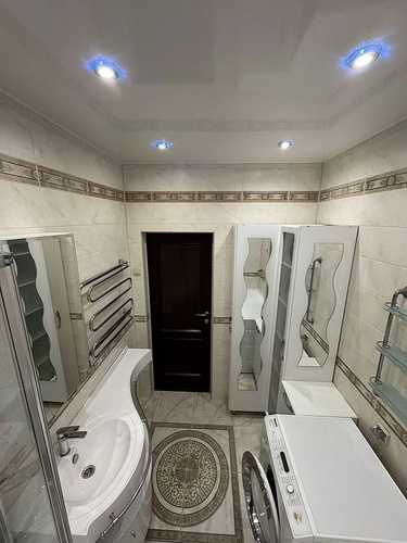- Санузел и ванная облицованы качественной плиткой; водонагреватель 80 л, центробежный вентилятор