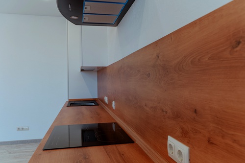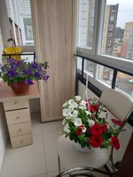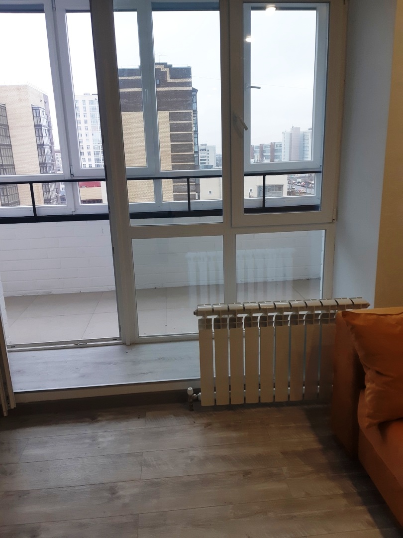 Лоджия остеклена, пол поднят на уровень пола кухни.