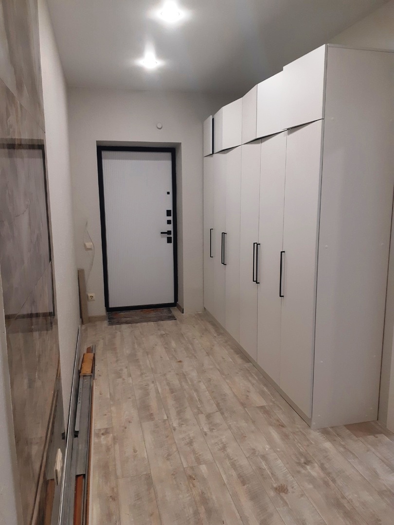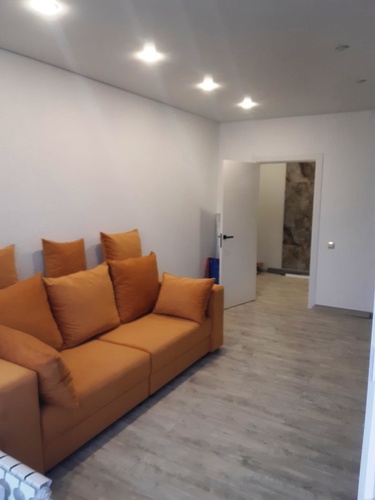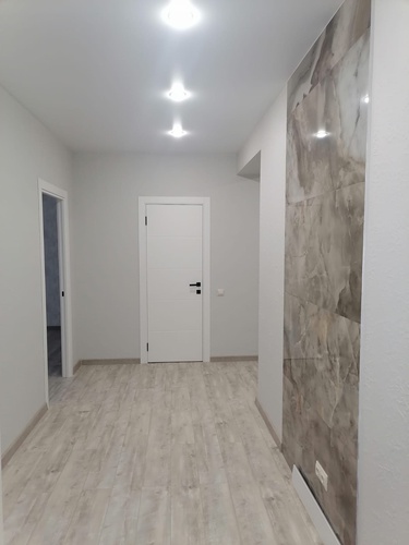 все материалы подбирались для себя, натяжные потоки, пол кварц-винил. обои производства Германия, в прихожей и кухне декоративная штукатурка.