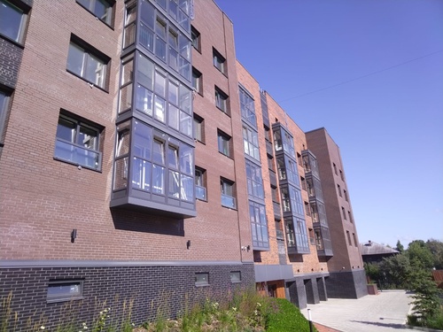 - Фасады зданий выполнены из облицовочного керамического кирпича с цветной кладочной смесью, что создает уникальный и привлекательный вид.