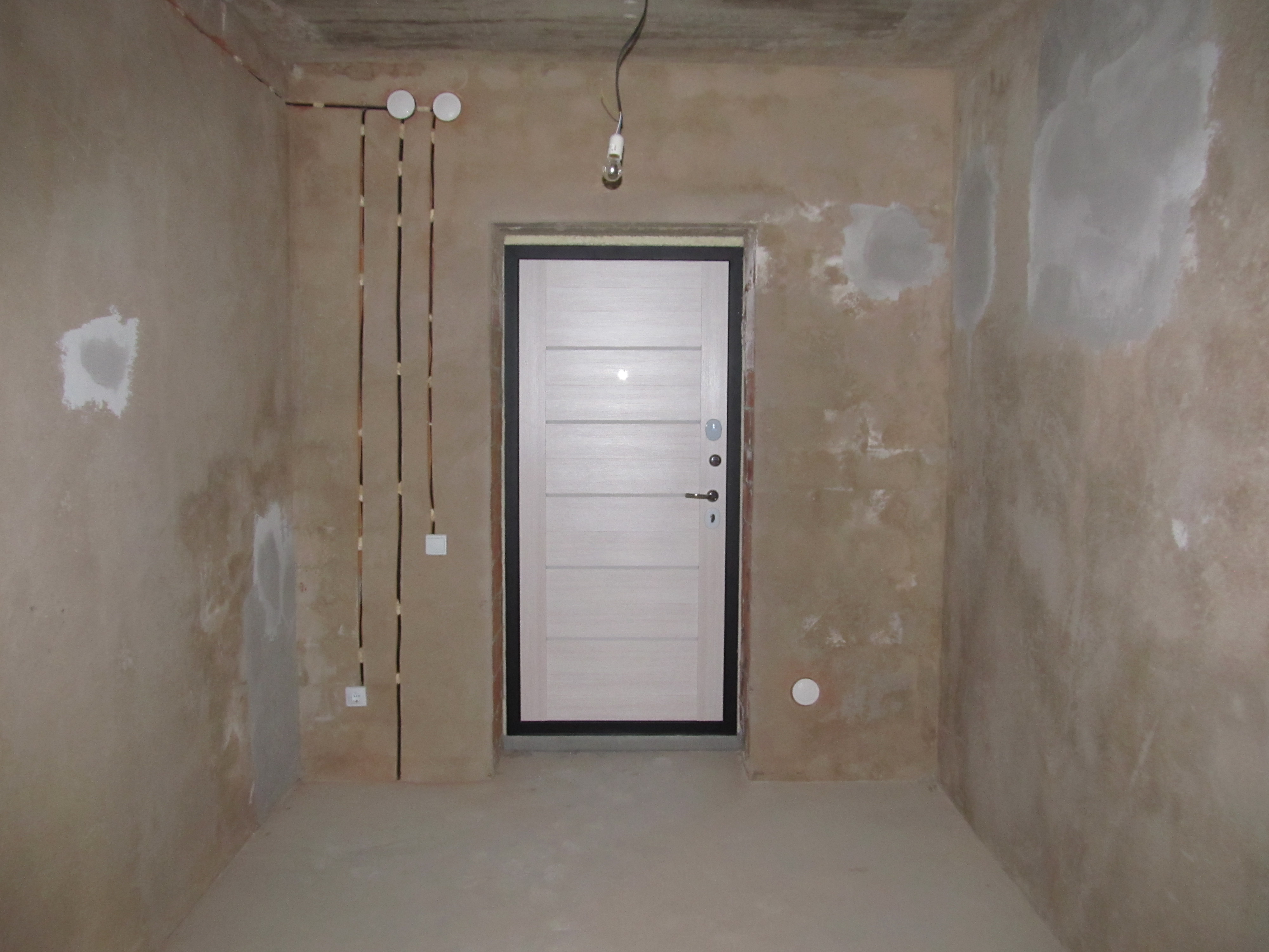 - стены черновая штукатурка, полусухая цементно-песчаная стяжка на полу.