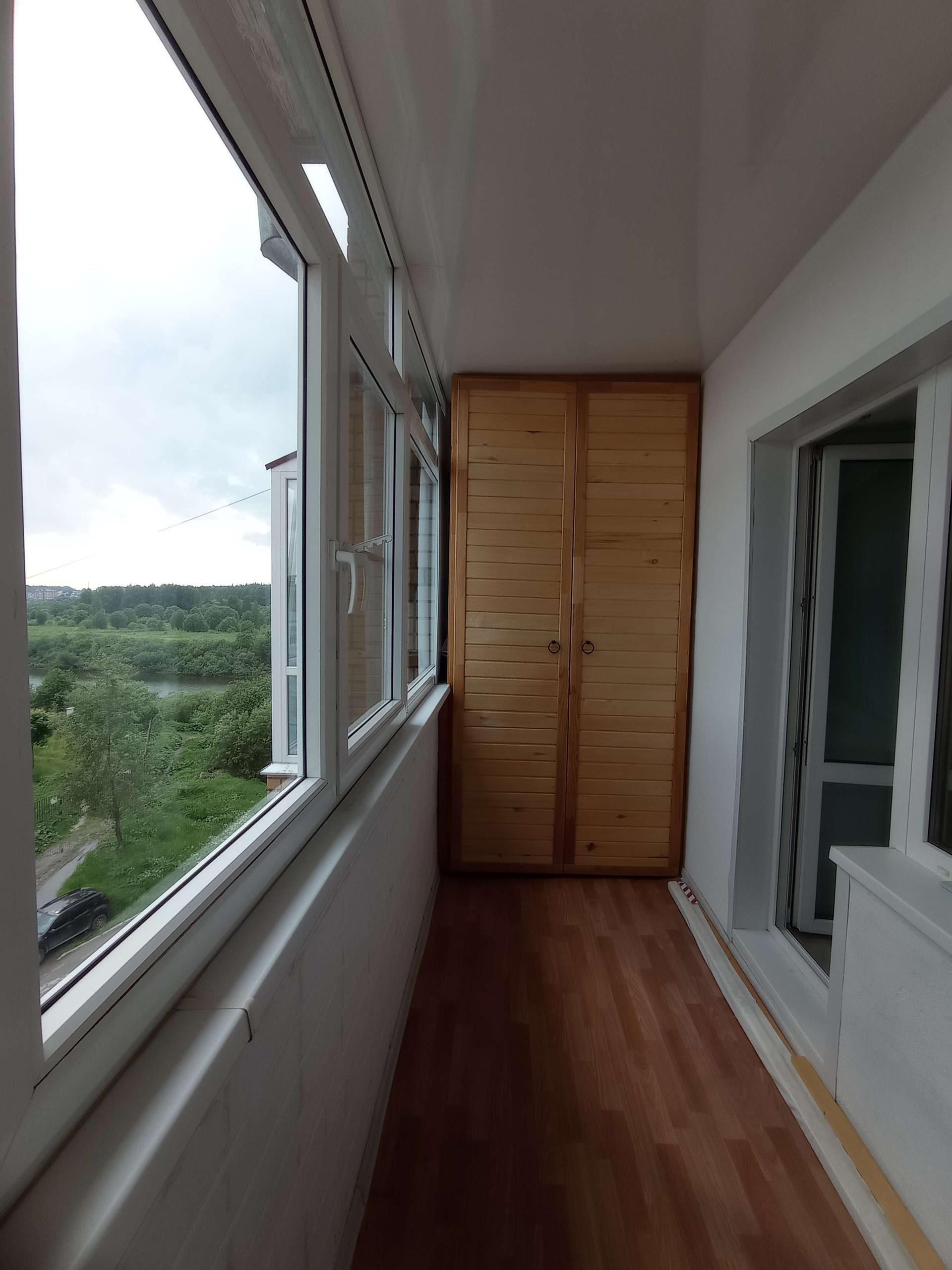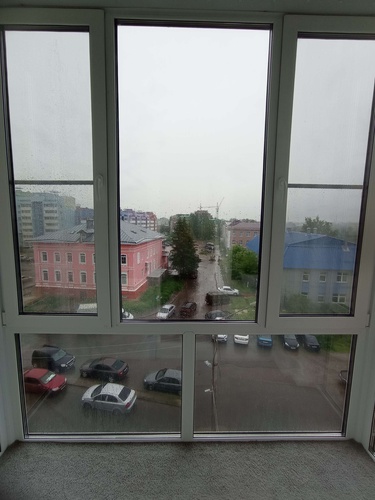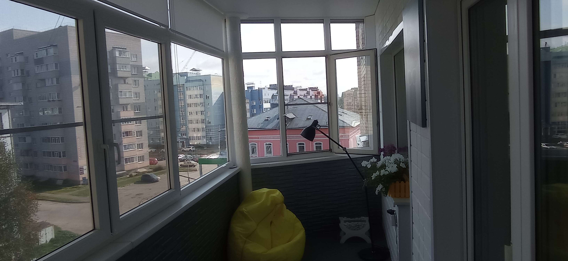 Окна выходят на три стороны: в тихий зелёный двор, на улицу Лаврова и — особенная прелесть — на реку. Утро с видом на воду и закат с чашкой чая на одном из трёх (!) балконов — это действительно ценно. Один балкон — из кухни, просторный и закрытый. Второй — панорамный, уютный, из спальни. Третий — большой и открытый, из гостиной.