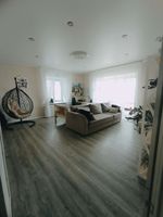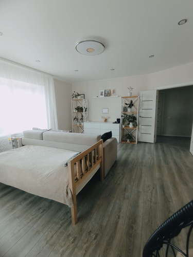 Ремонт свежий, делали для себя, с душой: современный, аккуратный, светлый. В прихожей и ванной — тёплые полы. Есть отдельная гардеробная и удобная кладовая — очень помогают сохранить порядок.