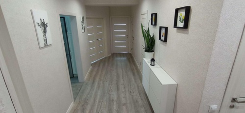 Ремонт свежий, делали для себя, с душой: современный, аккуратный, светлый. В прихожей и ванной — тёплые полы. Есть отдельная гардеробная и удобная кладовая — очень помогают сохранить порядок.