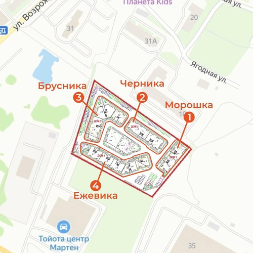 Комплекс расположен в квадрате улиц Возрождения (офисный центр ДУ Холмогоры), Ягодная (жилой дом по ул. Ягодная, д. 10), Окружное шоссе (ТЦ Лента и Тойота центр). Вся инфраструктура в шаговой доступности. В жилом комплексе предусмотрено: - 4 дома, переменной этажности 4-5 этажей; - все дома будут в одной территории; - безопасная благоустроенная территория, паркинг вынесен за внешнюю границу двора; - дома с лифтами; - высота потолков 3 метра; - панорамное остекление окна; - поквартирное газовое отопление; - своя управляющая компания; - интересная архитектура домов. Аккредитация в ВТБ и Сбербанке. Возможна ипотека с гос.поддержкой и семейная ипотека.