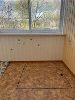 В квартире косметический ремонт, комнаты изолированы, окна выходят на улицу. Есть две раздельных санузла и одна лоджия.