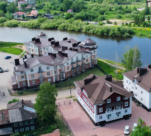 ЖК Георгевский исторический центр города, на берегу реки Вологда, со своей детской площадкой, парковой и другой прилегающей огороженной территорией. Это историческая часть города Вологды, где нет высотных домов.