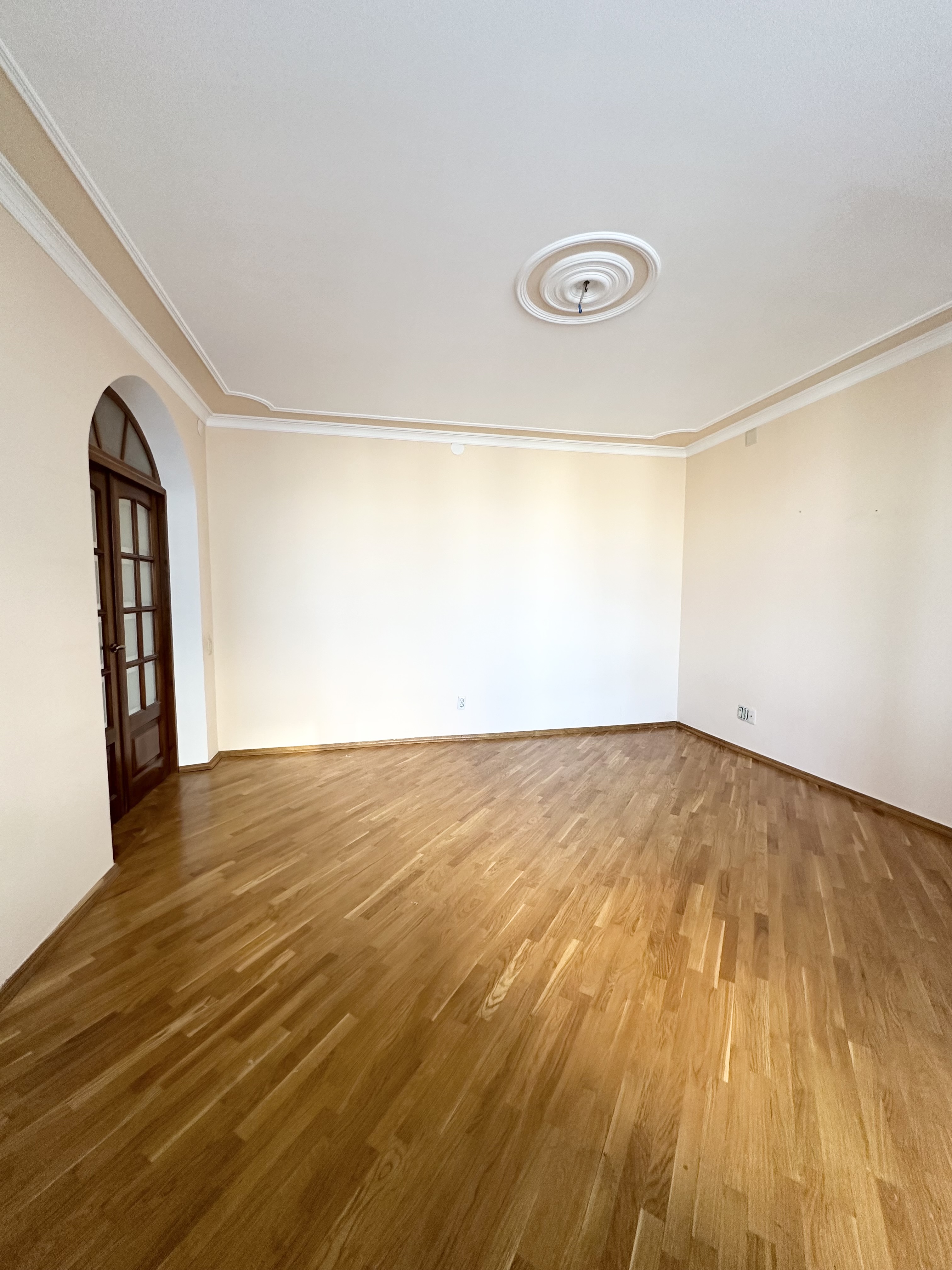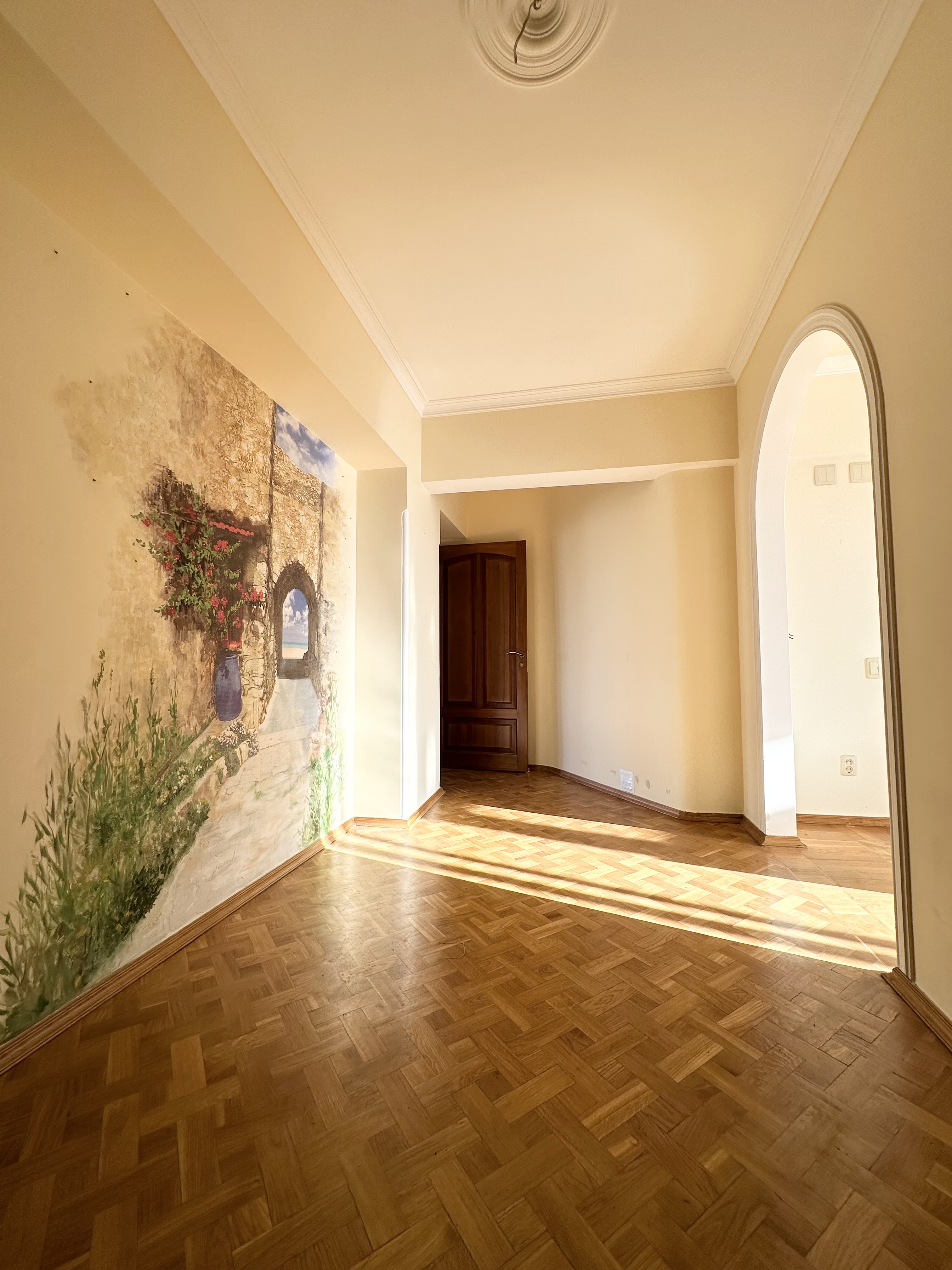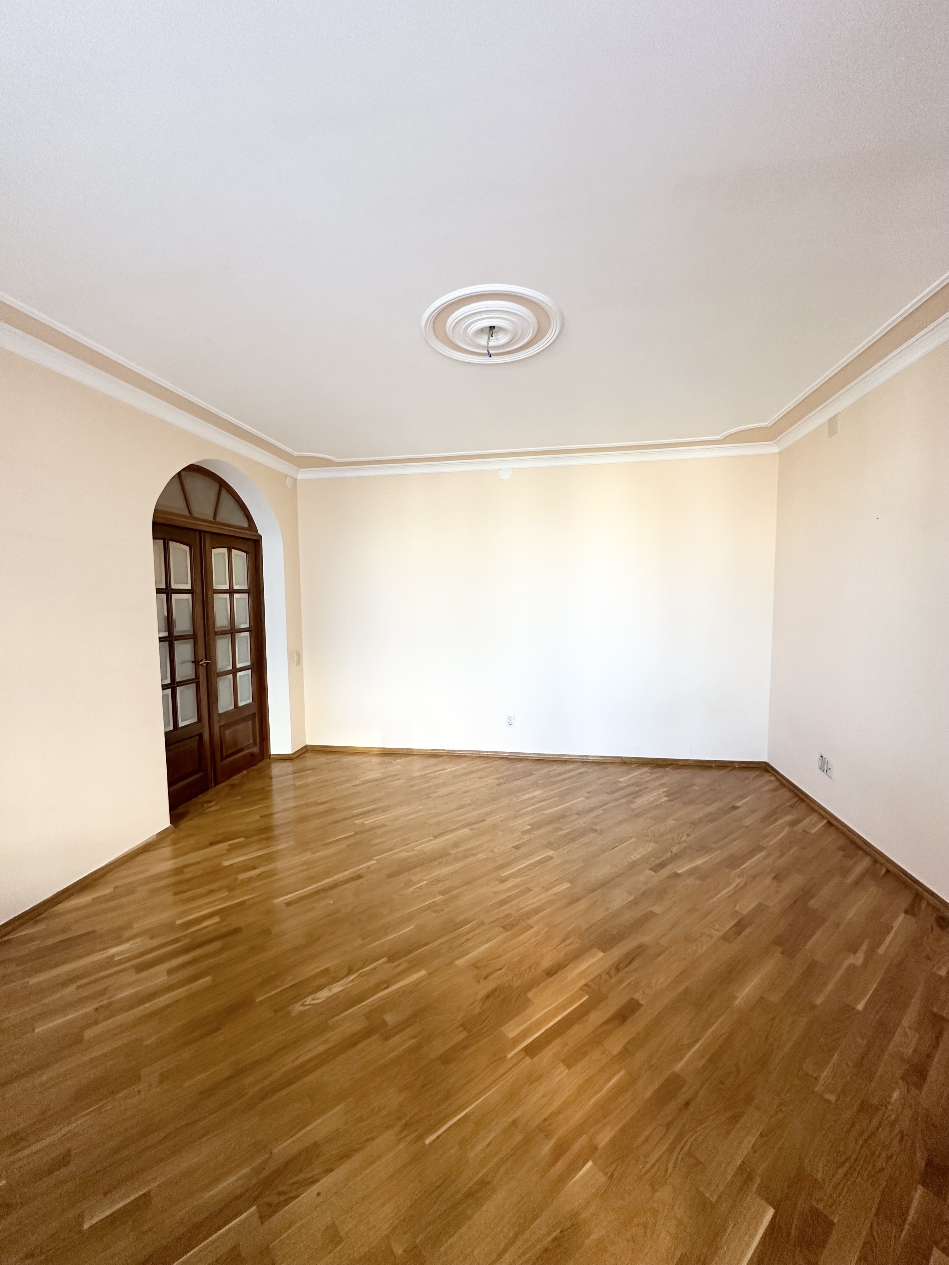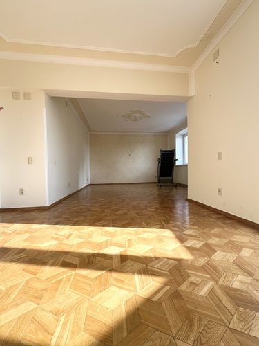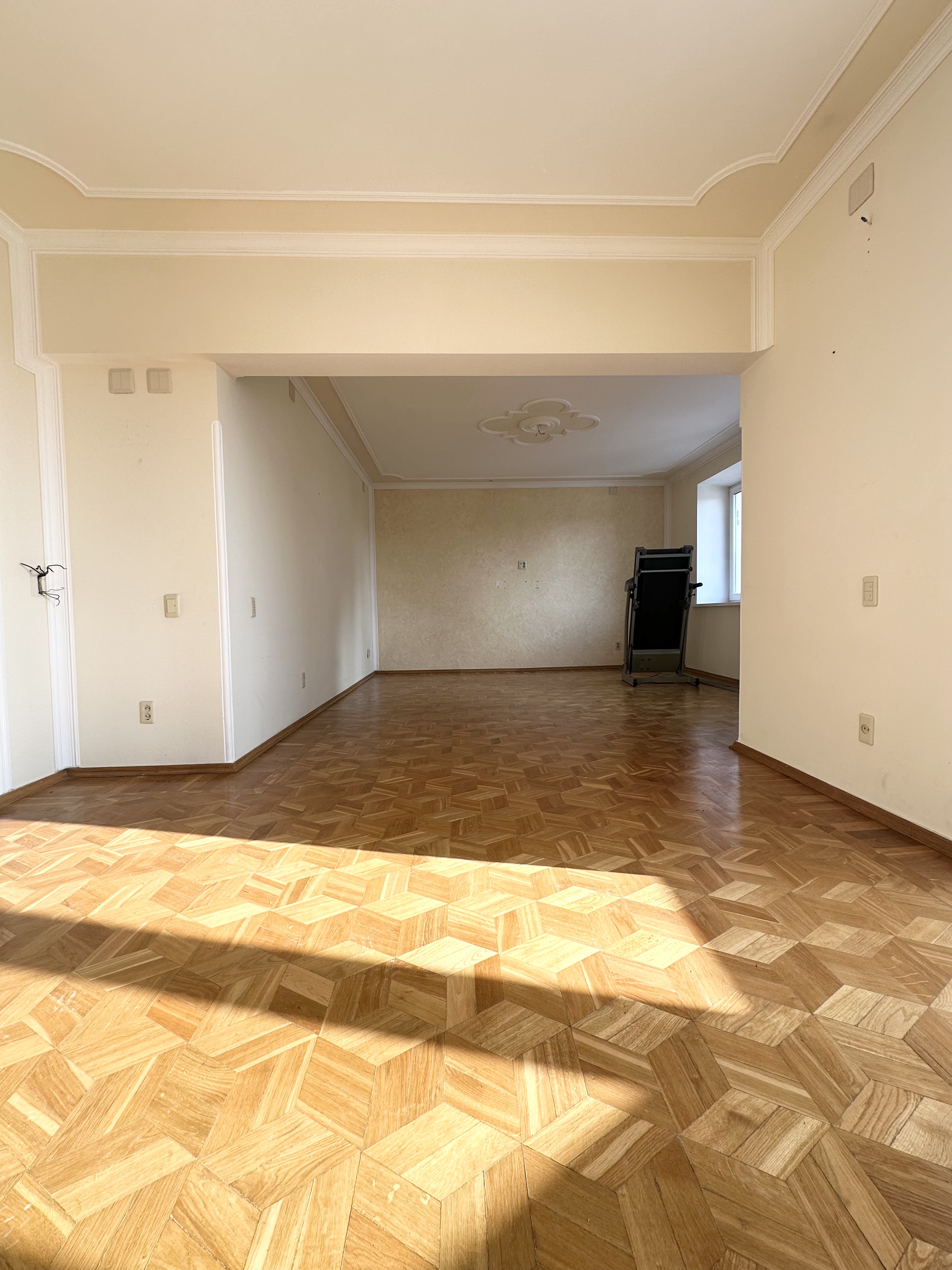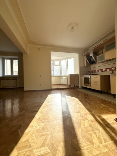 В квартире выполнен качественный ремонт: стены выровнены по маякам, на полу - натуральная паркетная доска, потолки отделаны экологичной гипсовой смесью.