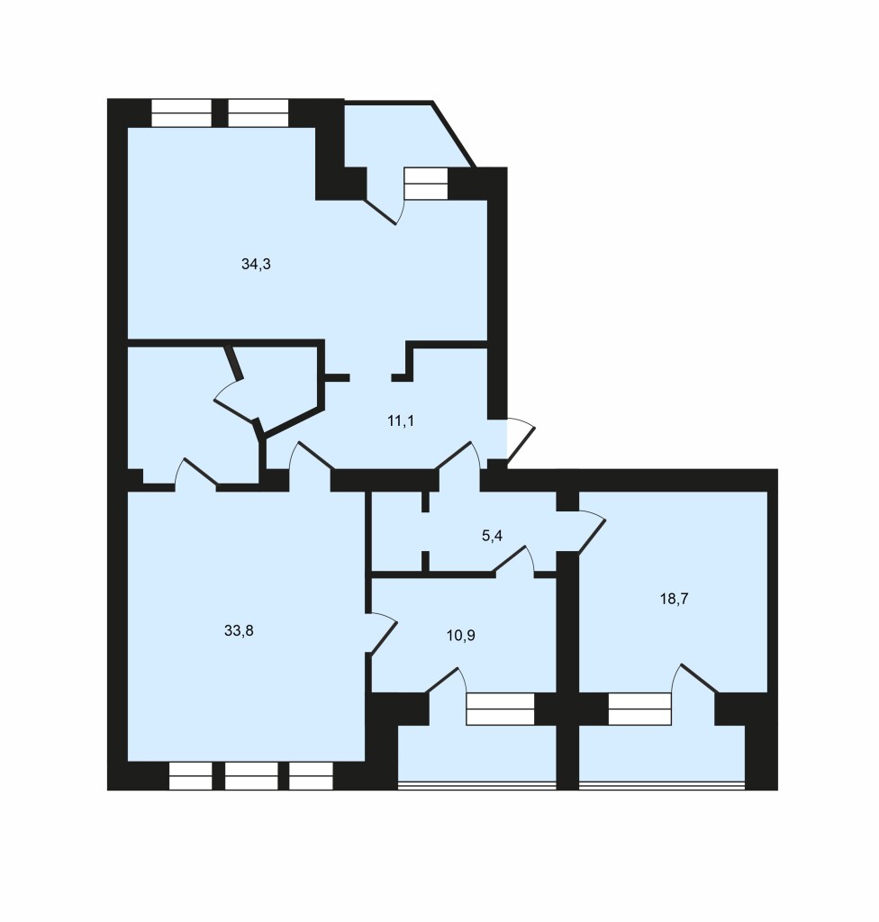 Отдельного внимания заслуживает планировка. Квартира разделена на две основные зоны: общую и приватную. Зона общего пользования состоит из входной части и просторной кухни-гостиной. Вторая часть квартиры-приватная. Здесь расположены три спальни, одна из которых с собственной ванной комнатой. Все помещения квартиры удобные по форме и расположению.