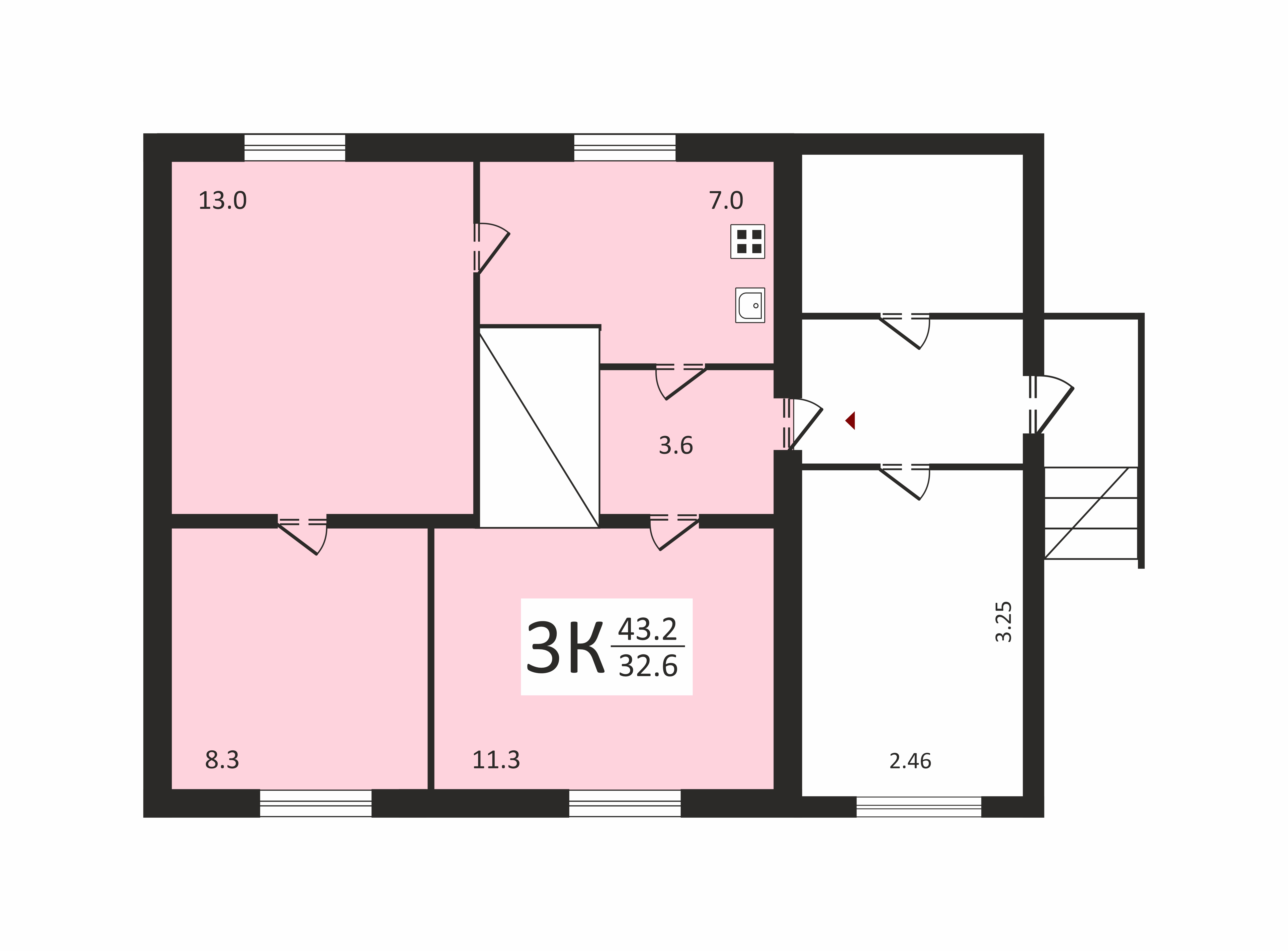 3х комнатная квартира в двухквартирном доме из бруса, по факту пол дома при минимальном бюджете.