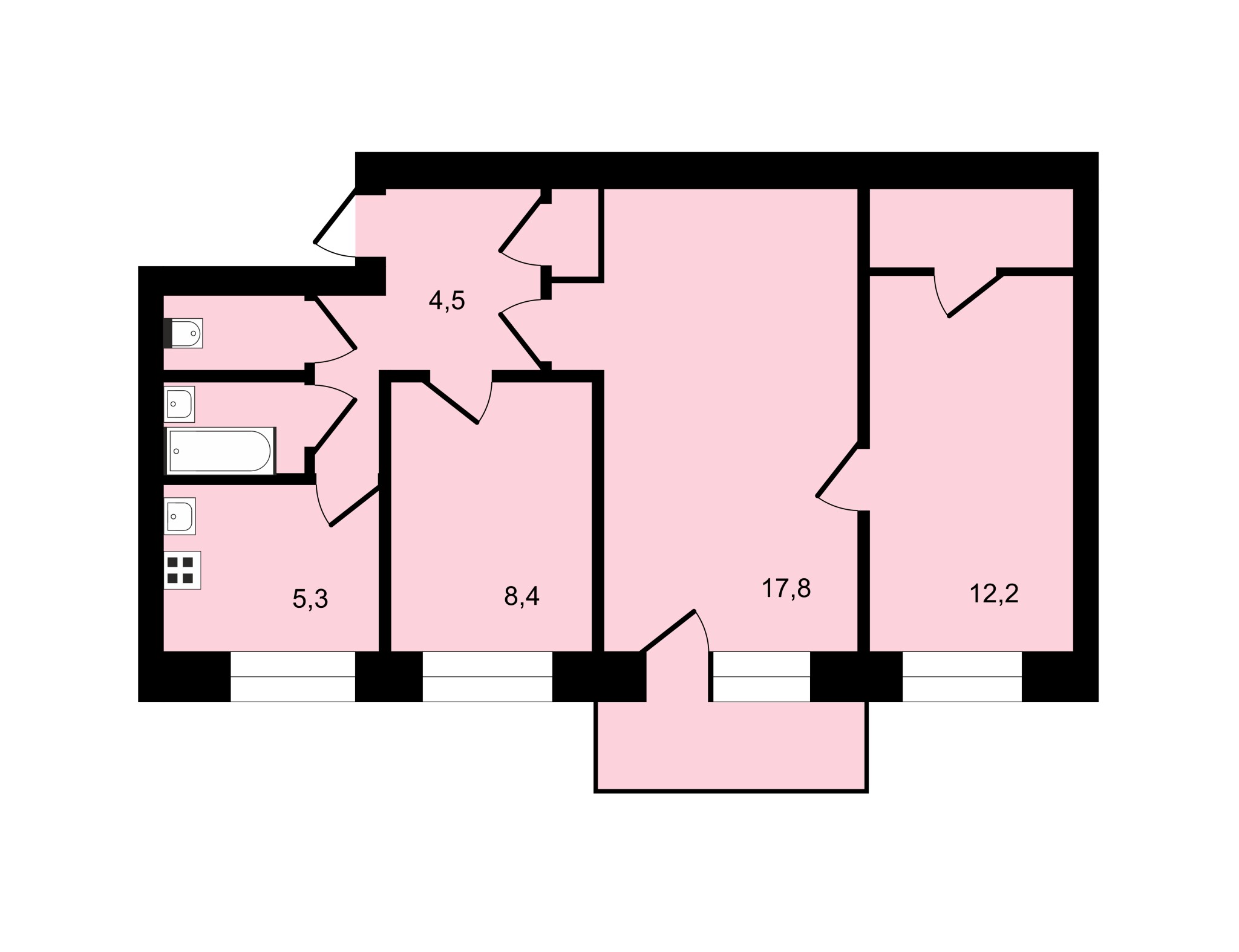 Санузел раздельный. Все окна выходят на одну сторону. Балкон из большой комнаты.