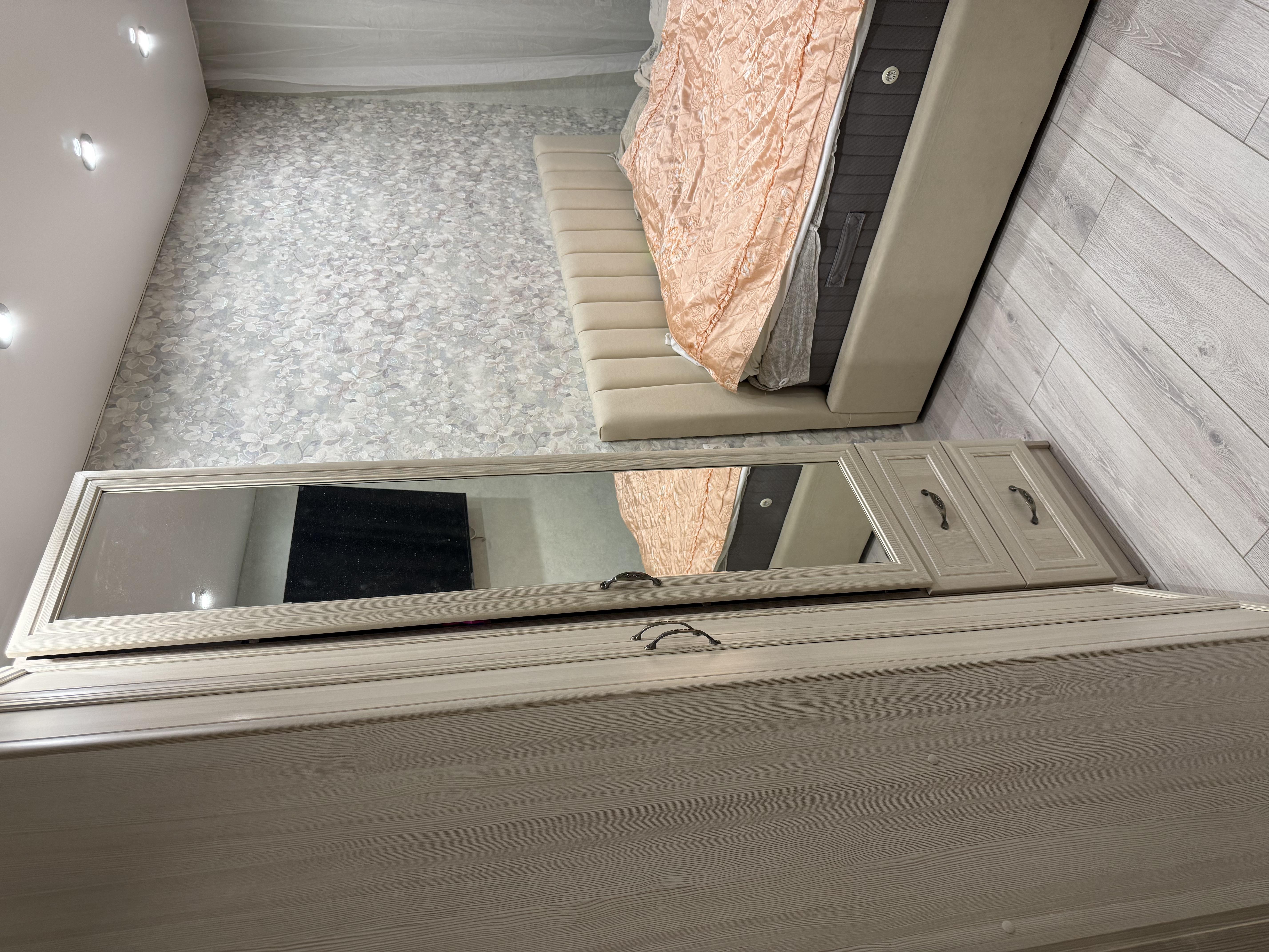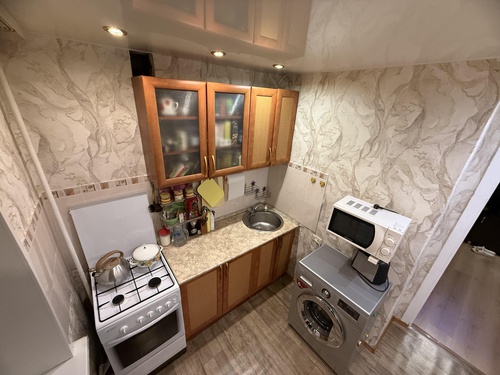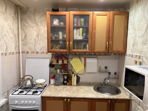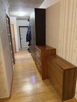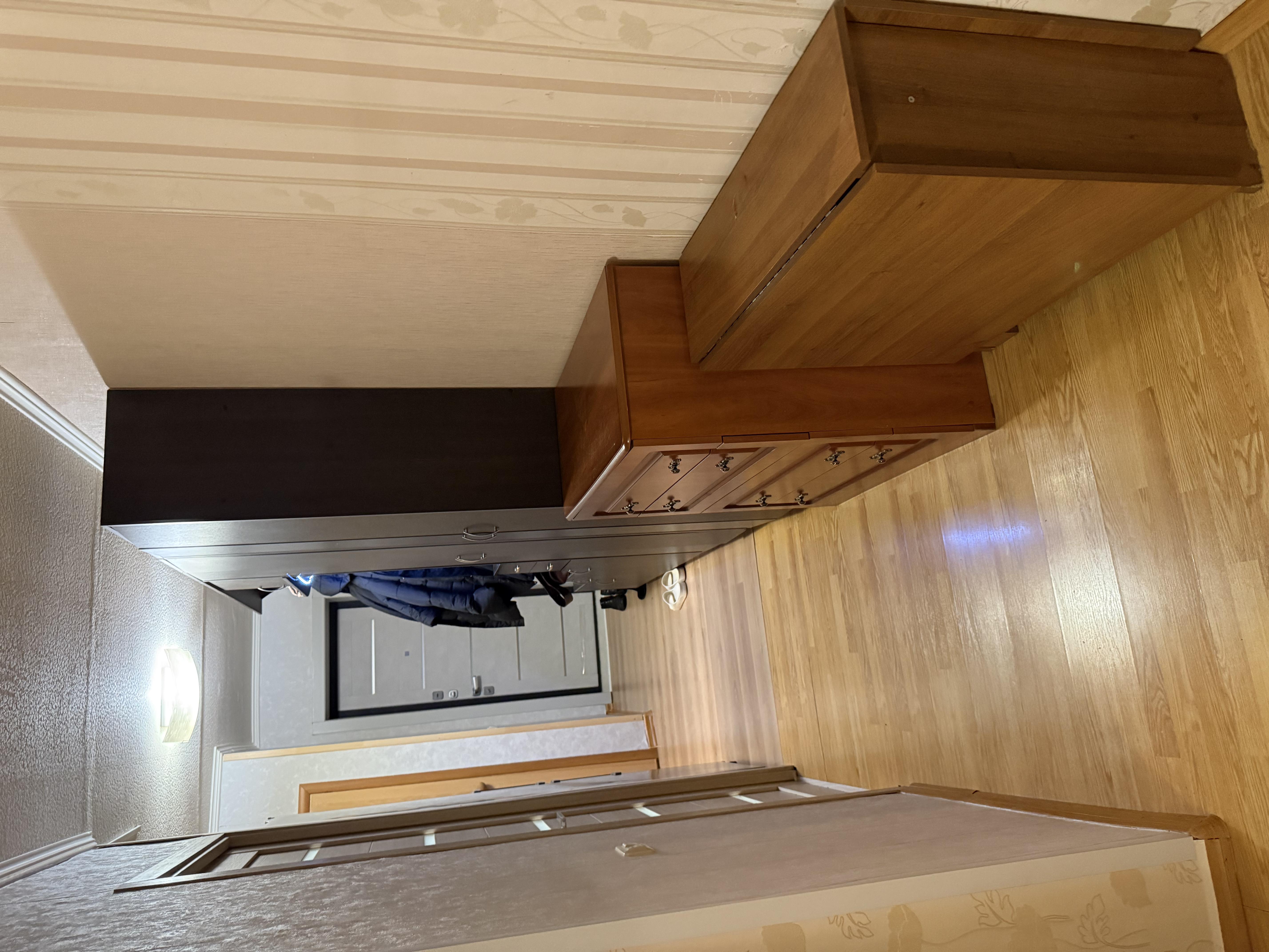 После продажи остается новым хозяевам: кухонный гарнитур, в гостинной стенка и шкафы.