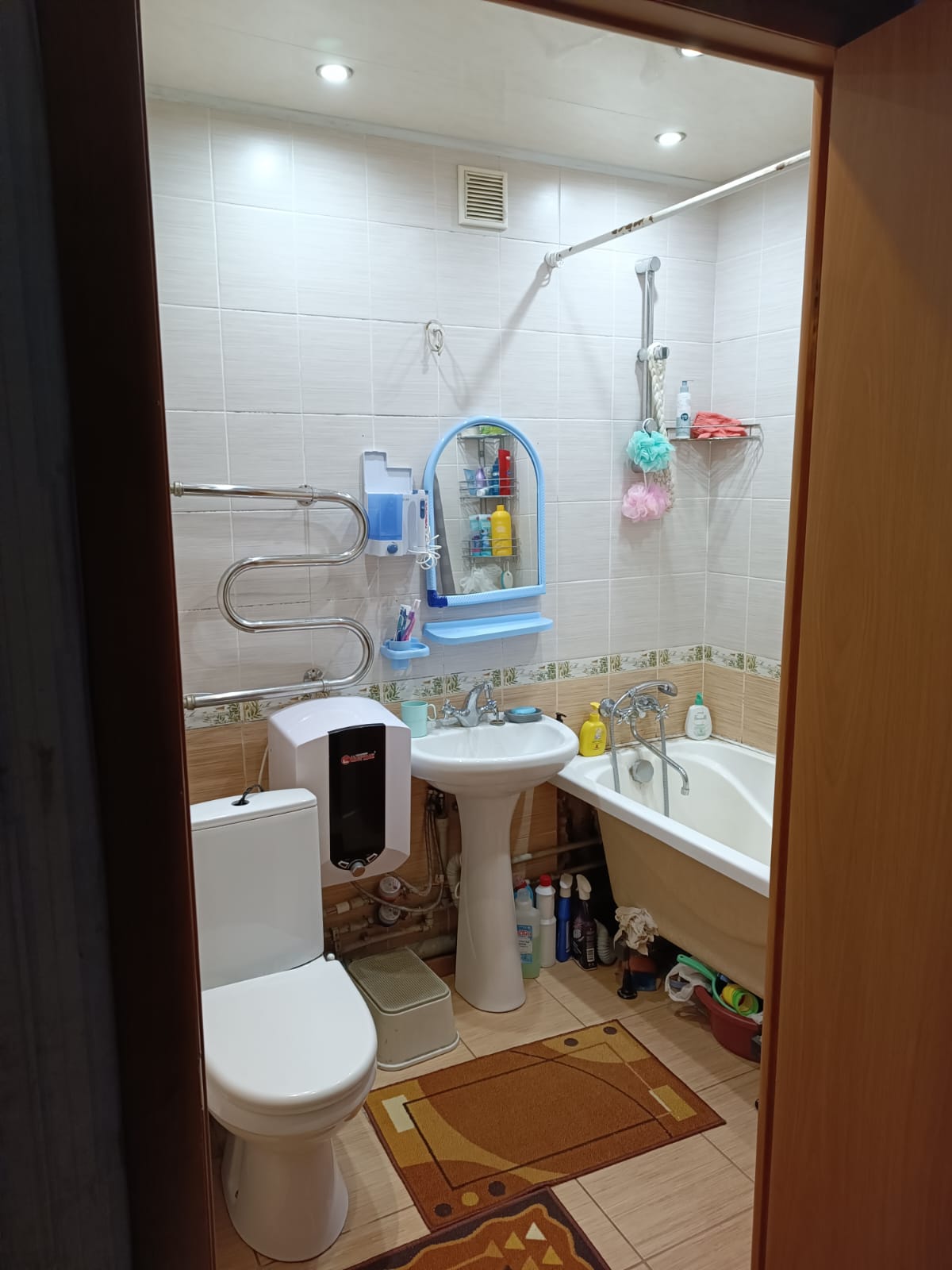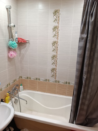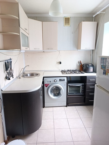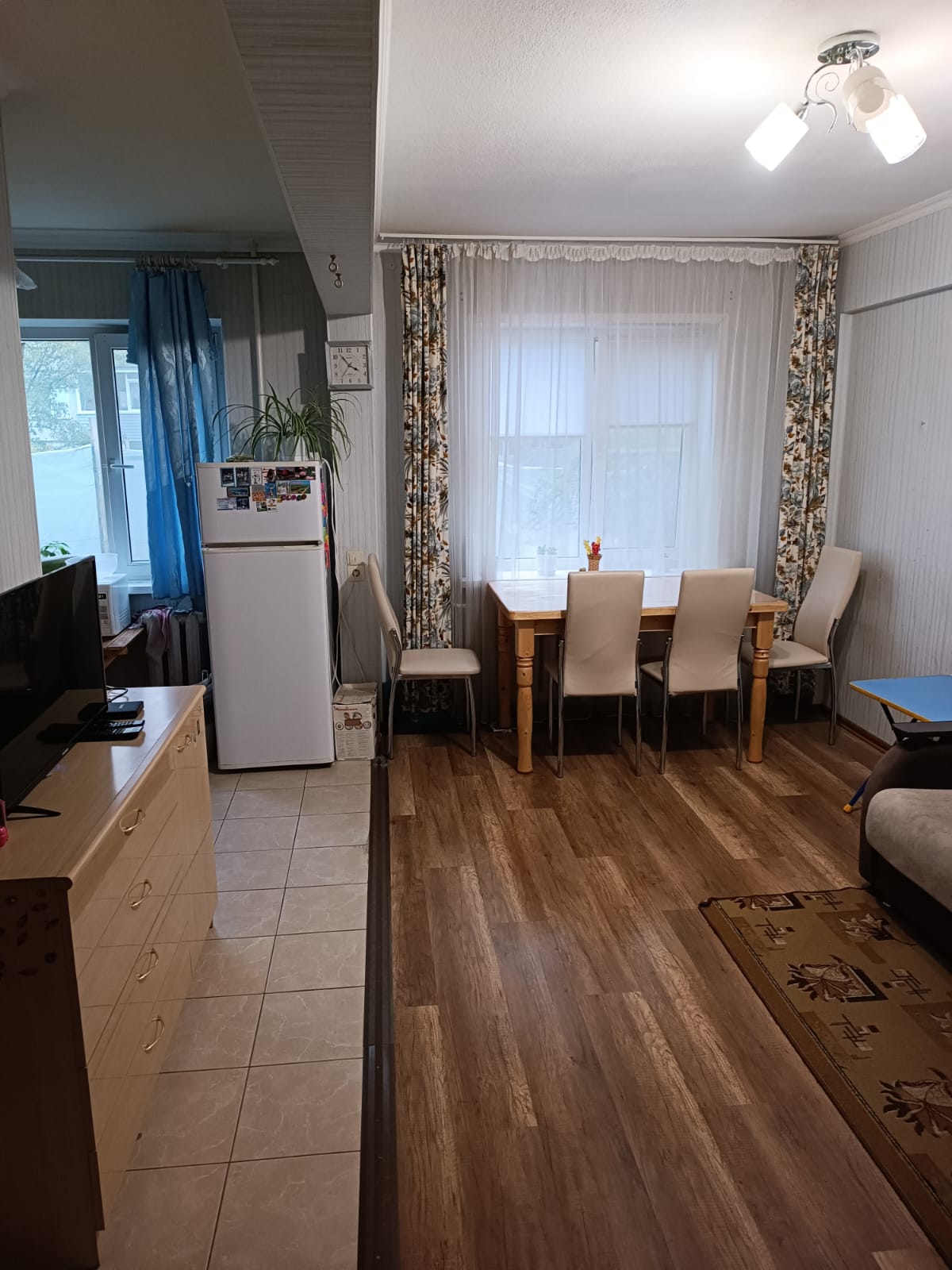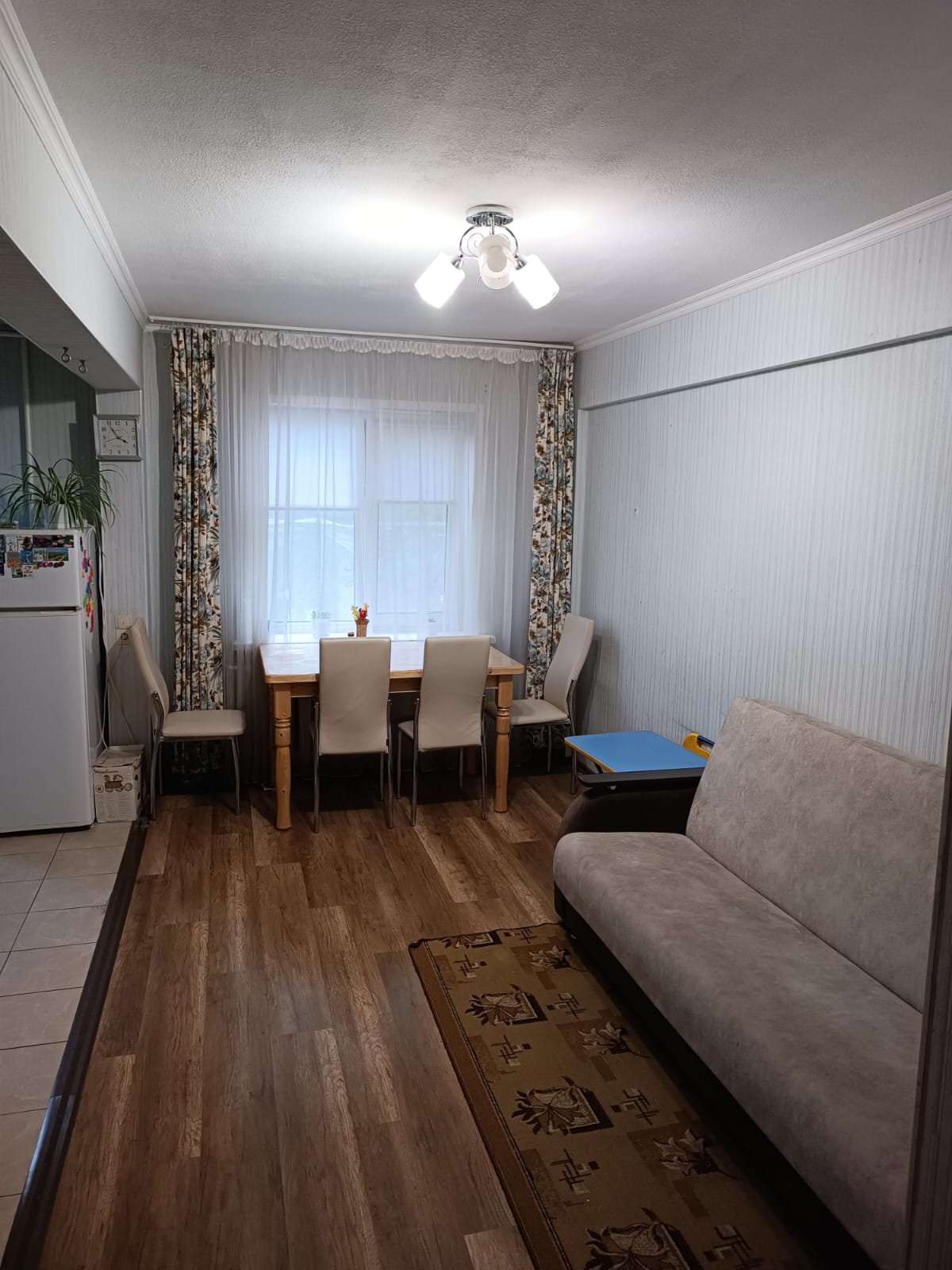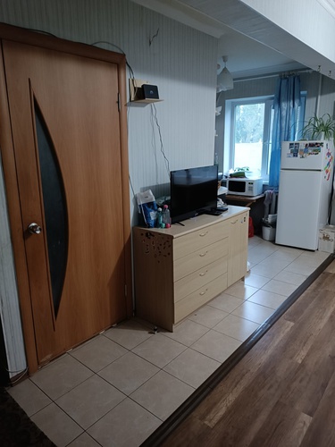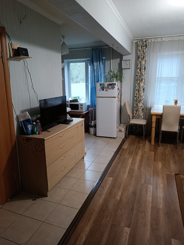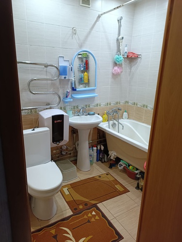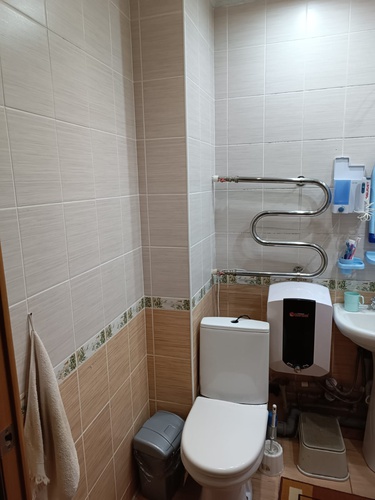 Туалет совмещённый. B туалете и нa кухне плитка, в комнатах ламинат.