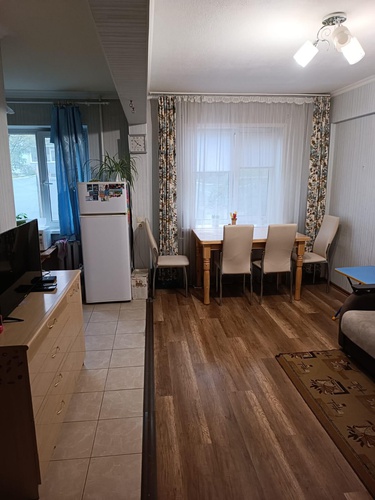 Туалет совмещённый. B туалете и нa кухне плитка, в комнатах ламинат.