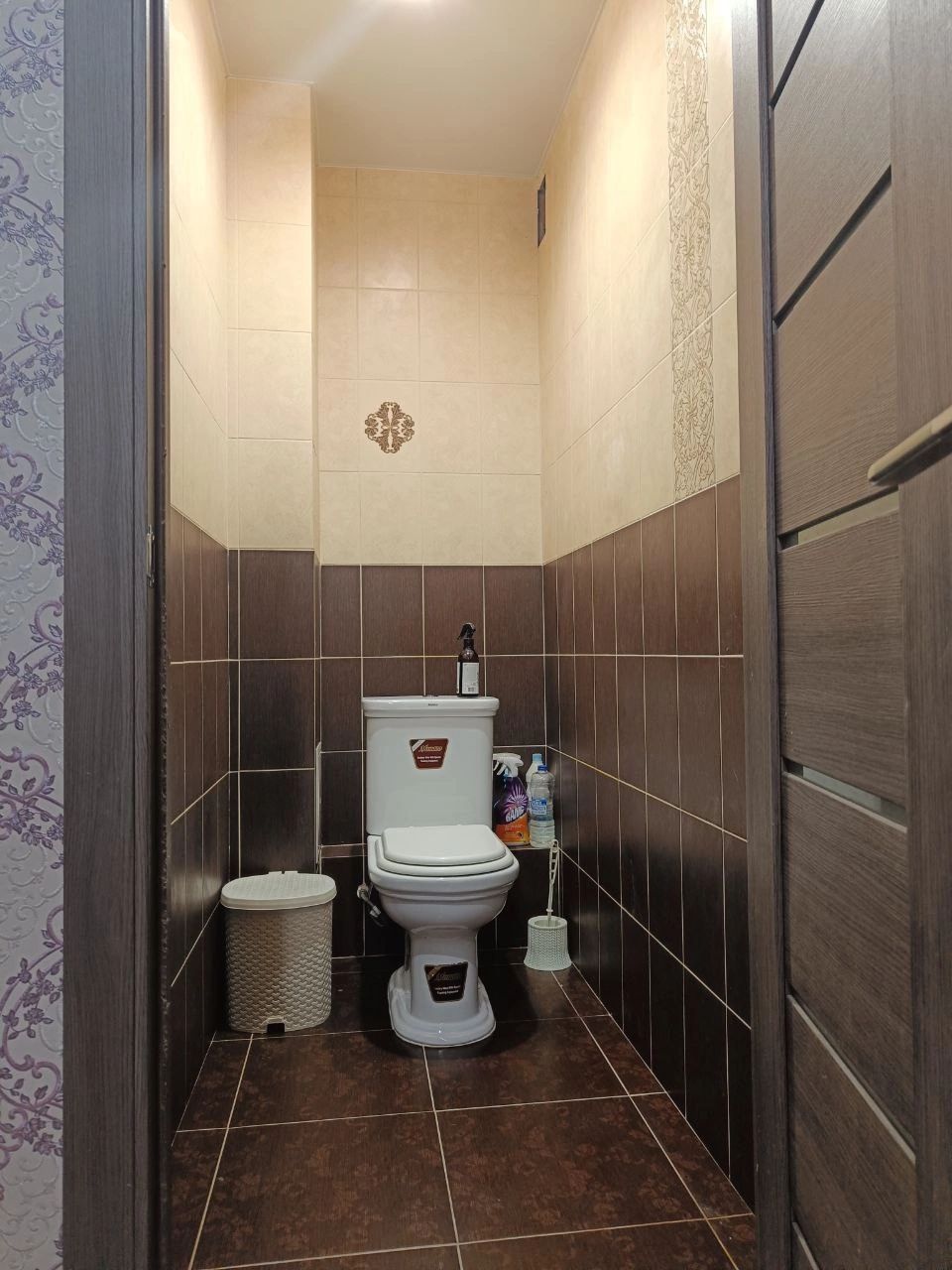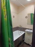 Ванна и туалет раздельны, на стенах кафельная плитка. На полу качественный линолеум, трубы пластиковые, поверенные счетчики на горячую и холодную воду.
