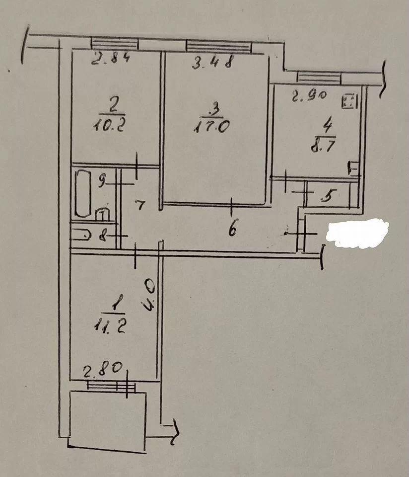 В квартире три изолированные комнаты площадью 10,2, 17 и 11,2 квадратных метра, что позволяет каждому члену семьи иметь своё пространство. Также есть просторная кухня площадью 8,7 квадратных метра, где можно комфортно готовить и проводить время с семьёй.