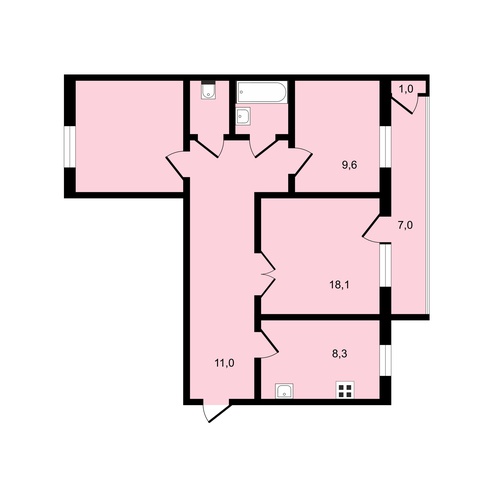 Общая площадь квартиры составляет 67,5 кв. м, из которых 51,8 кв. м — жилая площадь, а 8,3 кв. м приходится на кухню. Площадь комнат — 51,8 кв. м.