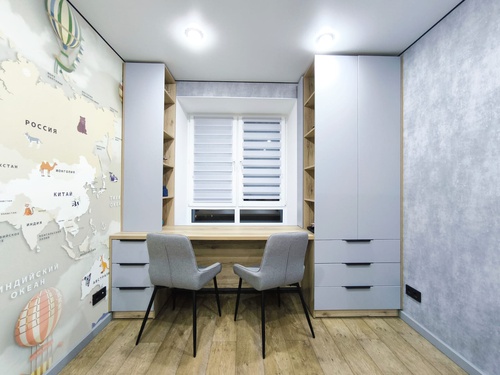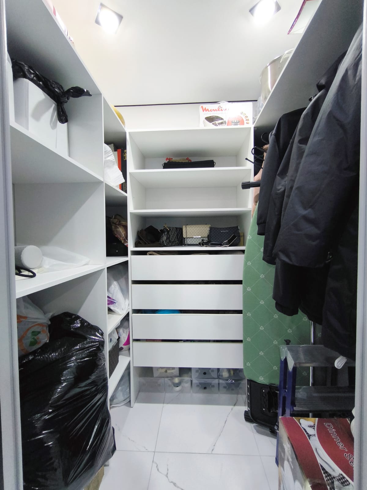 - В гардеробной комнате установлена удобная система хранения вещей.