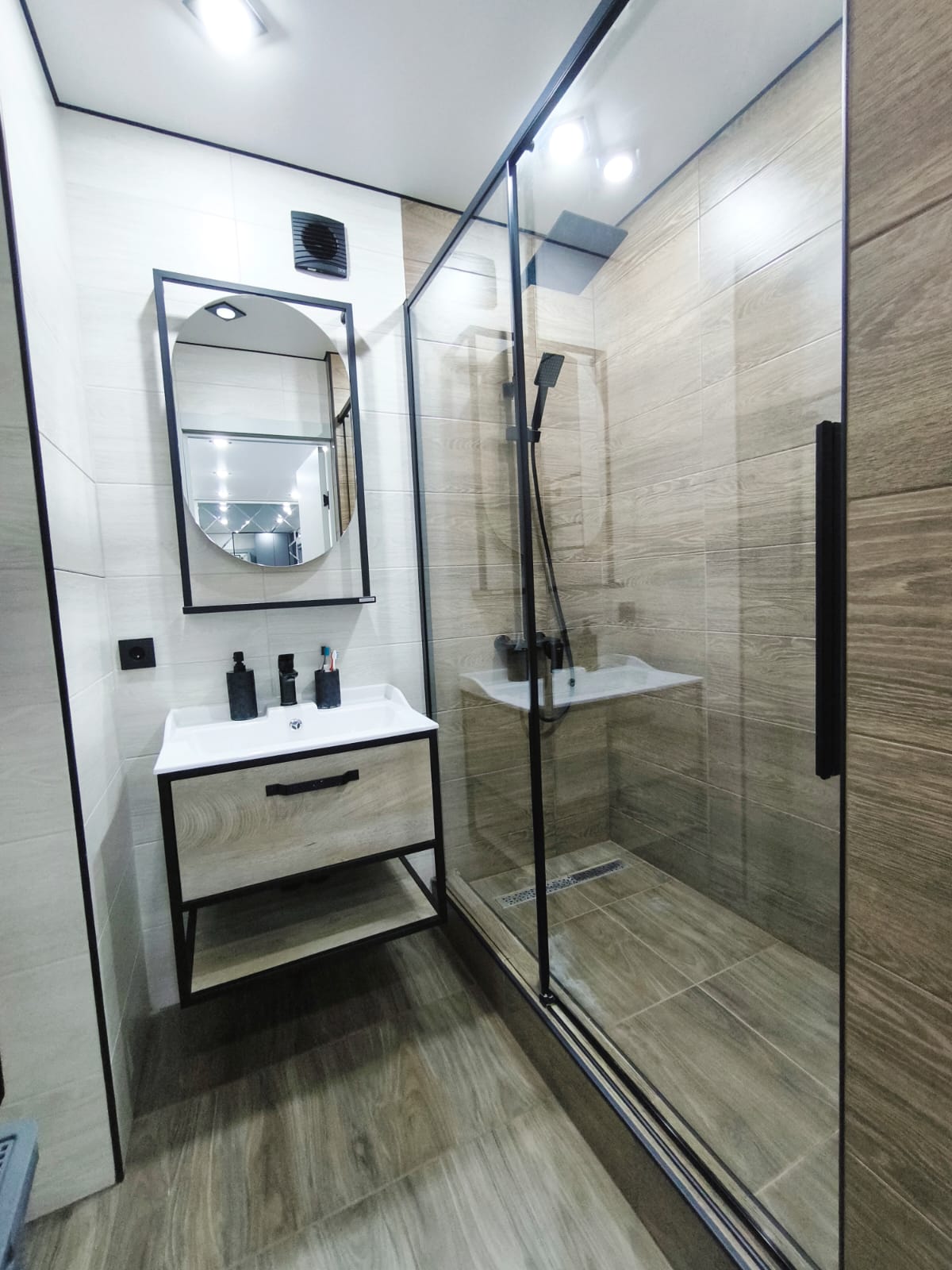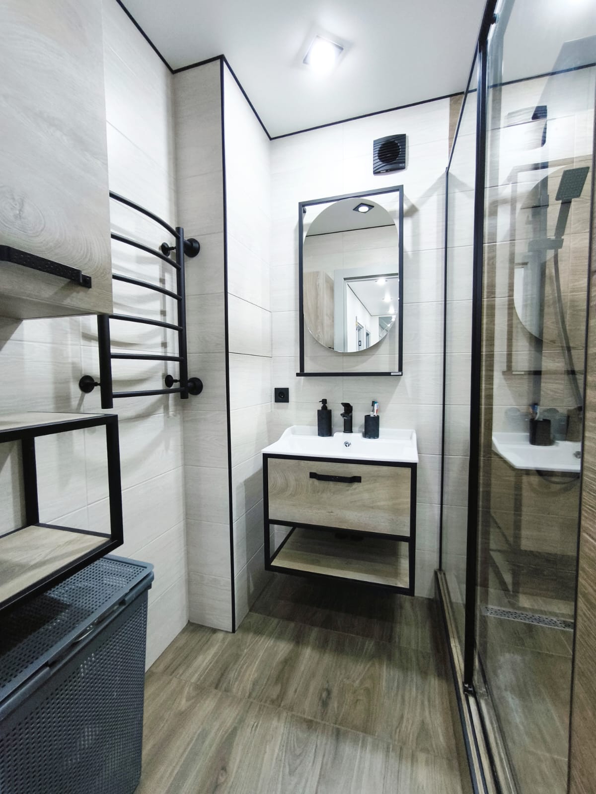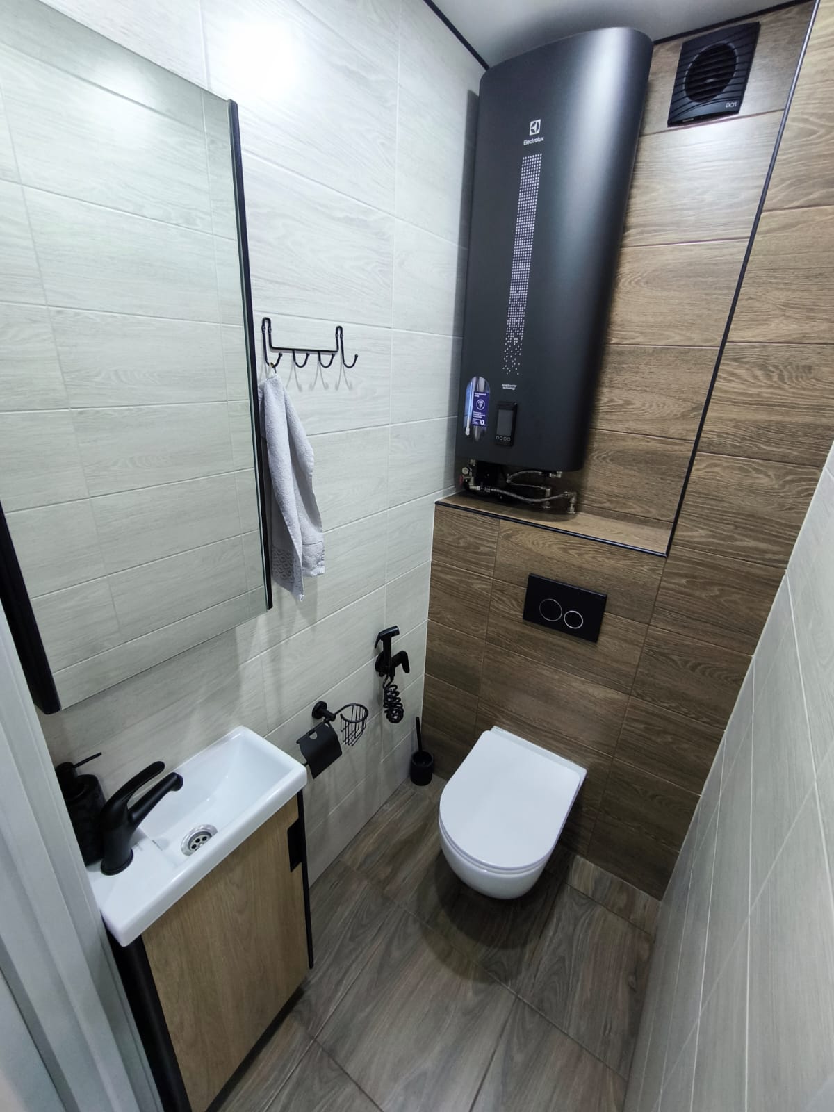 - Ванная и санузел в керамограните, установлены электрические вытяжки, водонагреватель, качественная сантехника.