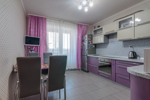 - просторная кухня-гостиная 12,2 кв.м. Пол плитка. Установлен кухонный гарнитур, определено место под холодильник.