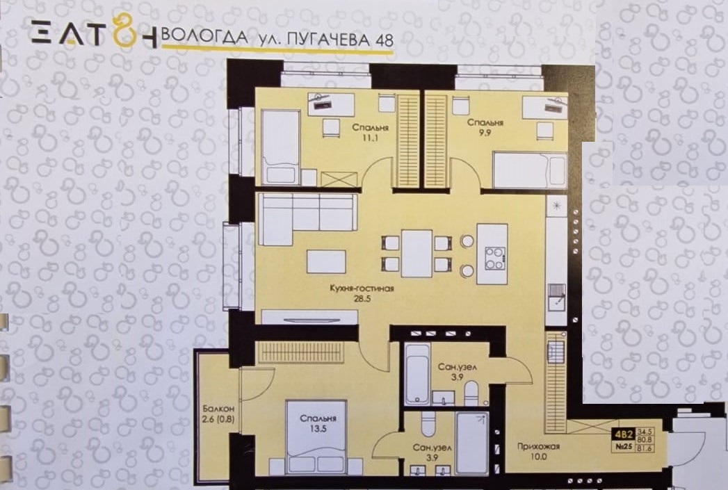 Квартира полностью укомплектована мебелью и техникой.