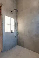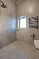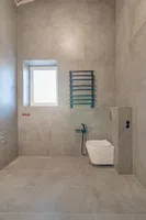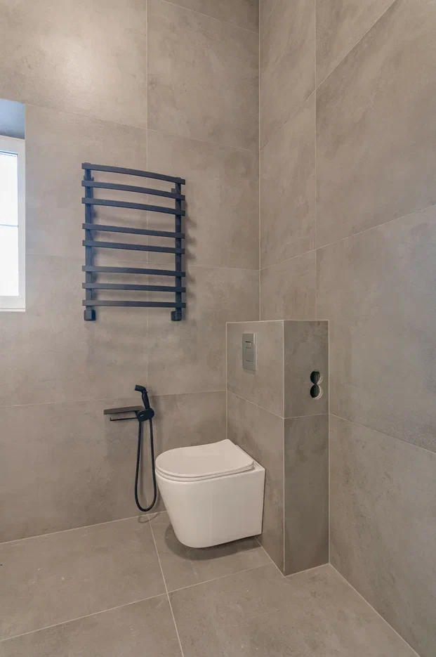 - В гостевом санузле стены и пол в керамограните, установлена инсталляция, душ, водяной полотенцесушитель и гигиенический душ.