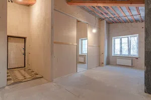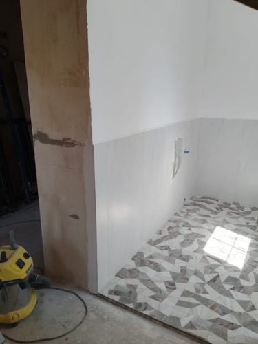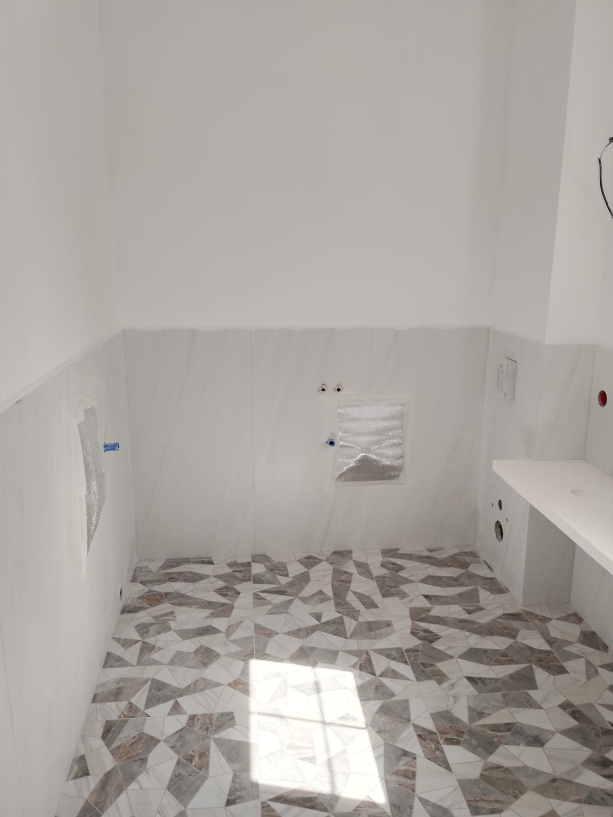 - Полы подготовлены к укладке напольного покрытия, в прихожей уложен керамогранит.
