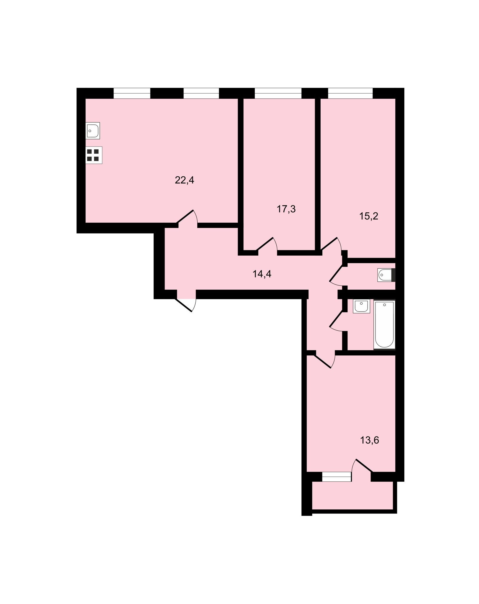 Квартира находится на втором этаже десятиэтажного дома. Общая площадь составляет 88,7 кв. м, из которых жилая — 47 кв. м. Просторная кухня площадью 21 кв. м прекрасно подойдет для семейных ужинов. Удобная планировка с изолированными комнатами позволяет всем членам семьи находить свое личное пространство. Окна выходят как на улицу, так и во двор.