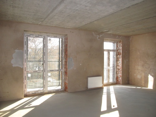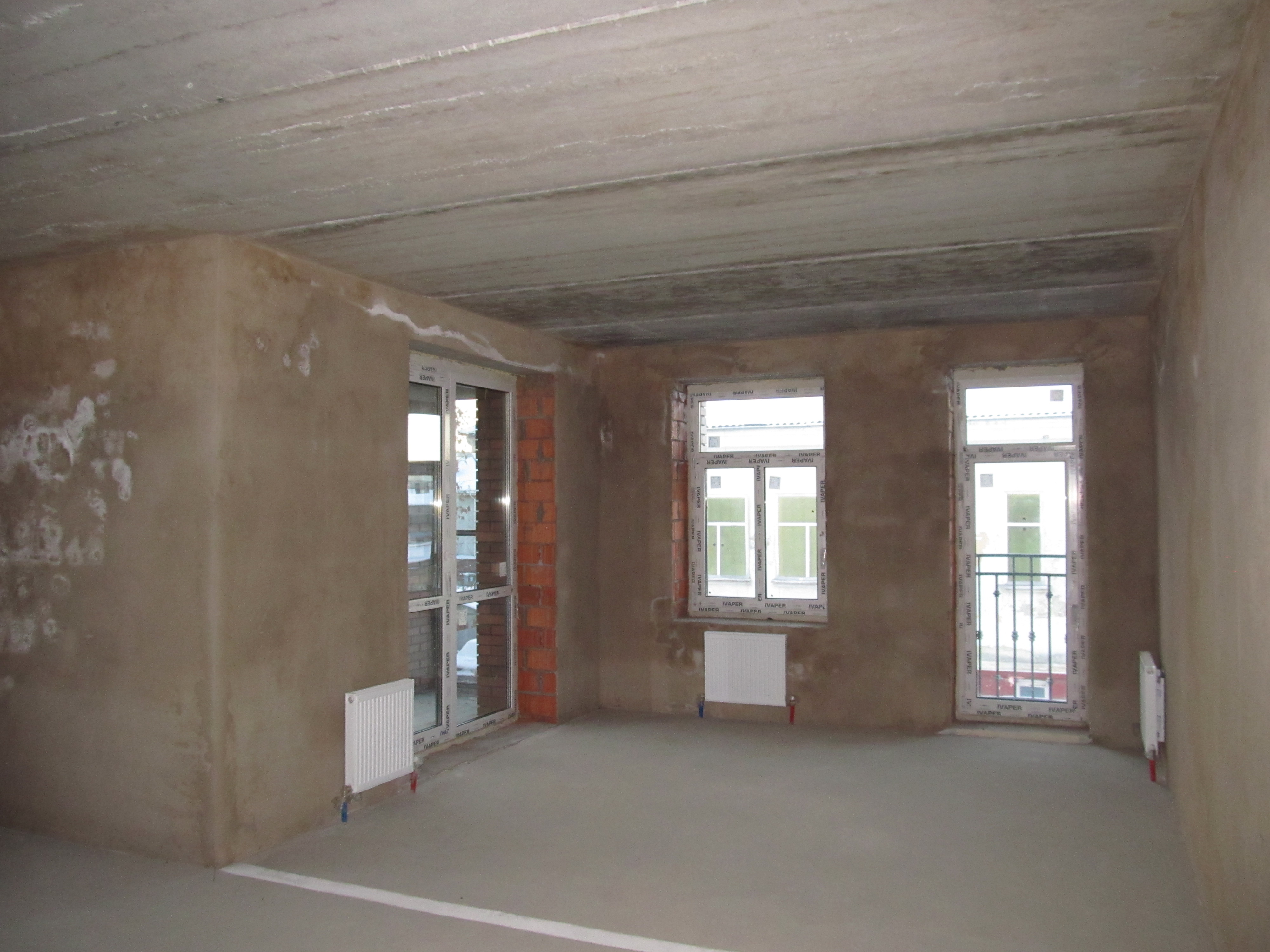 - стены черновая штукатурка, полусухая цементно-песчаная стяжка на полу.