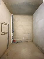 Установлен двухконтурный газовый котёл, горизонтальная (лучевая) разводка труб отопления и водоснабжения.